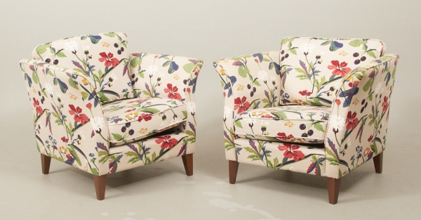 Ett par, nyare tillverkning, lösa plymåer, omärkta, klädda i textil "Gripsholm", Borås Cottons, smärre bruksslitage, men smuts förekommer.