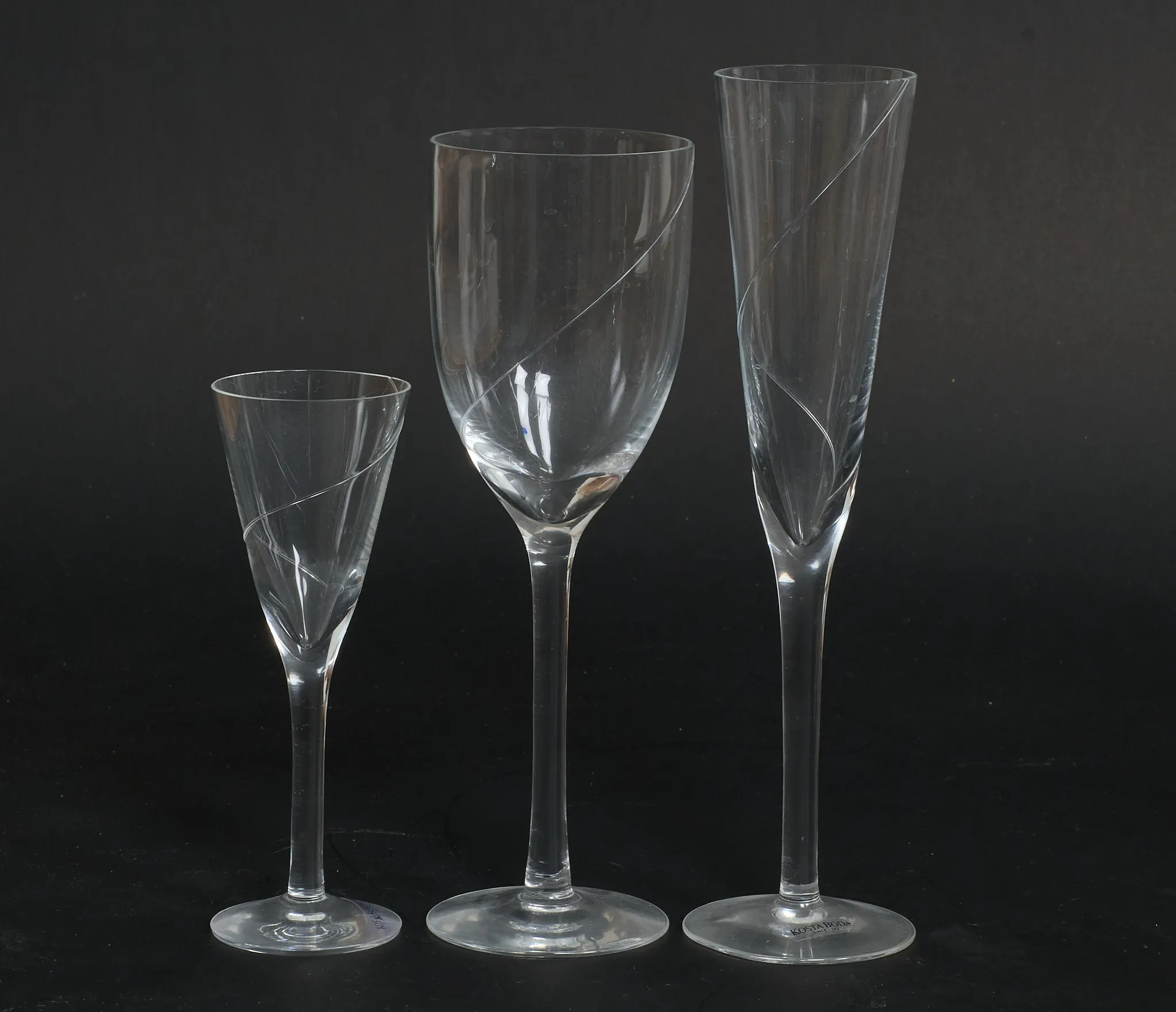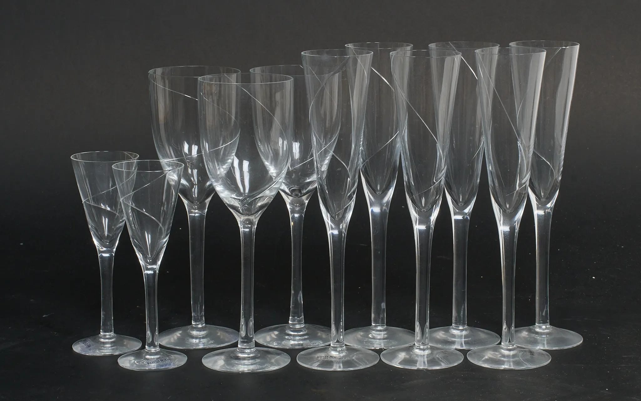 6 champagneglas, 3 vitvinsglas samt 2 likörglas. Höjd 15,5 - 24 cm. mindre nagg förekommer.