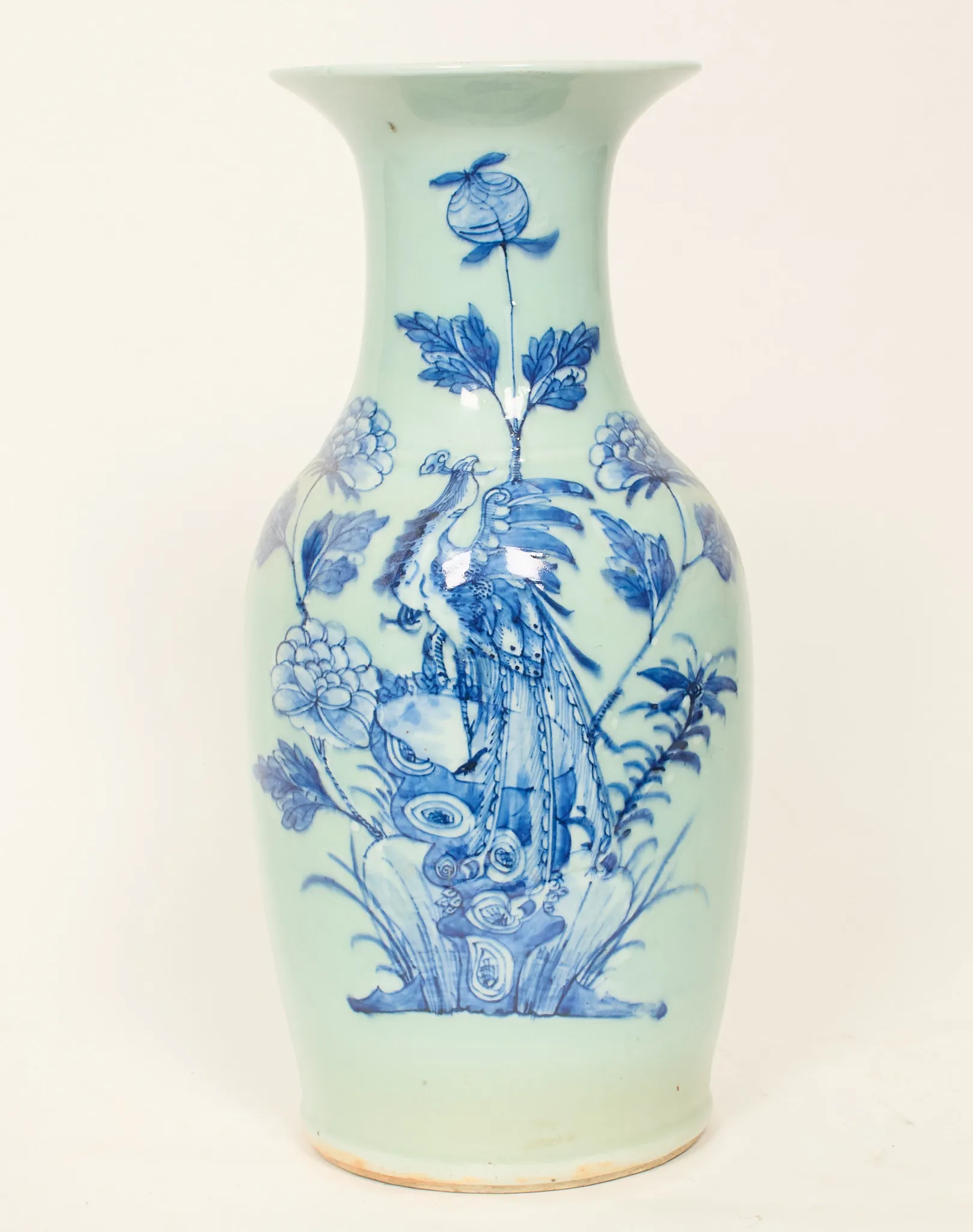 Dekor i underglasyrblått, med paradisfågel och växtlighet, höjd 42 cm, glasyrmista, smärre bruksslitage.