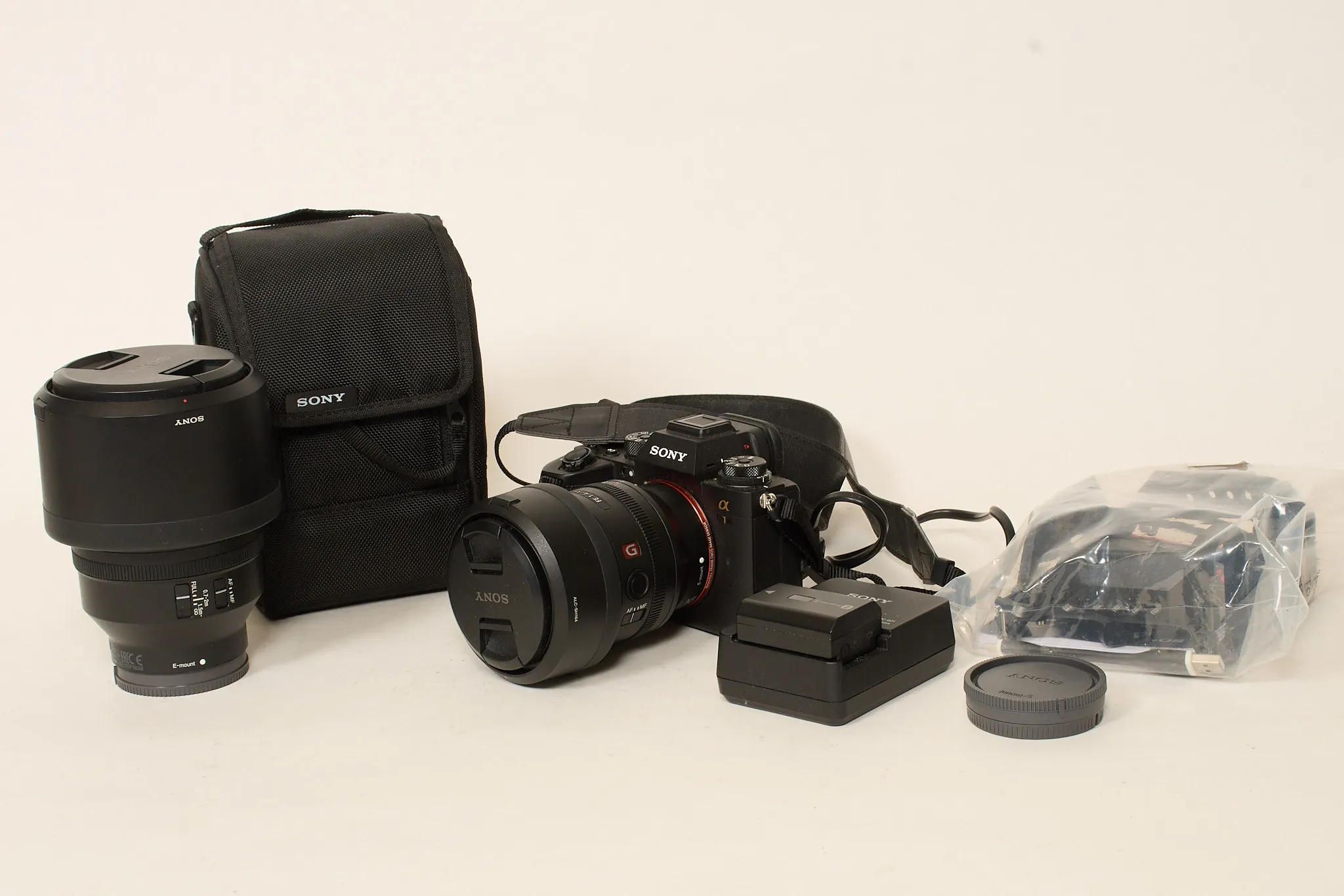 Fullformat med ett Sony FE 1.4/35 GM objektiv samt FE 135mm f/1,8 GM objektiv. 2 batterier, en SmalRig 3667 Full cage samt minneskortläsare Sony MRwWG2 Cfexpress Type A.