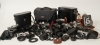 Rolleiflex compur rapid, Pentax MG- Tokina 35-70 mm, Pentax P 30- Pentax Zoom 28-80 mm., Pentax K100-Tokina 135 mm, Olympus Trip 35, Bälgkamera, Praktica IVF, Praktica IV BM, Solida 1 Franka, Zenit 3 M, Kikare chinon 7x50 mm