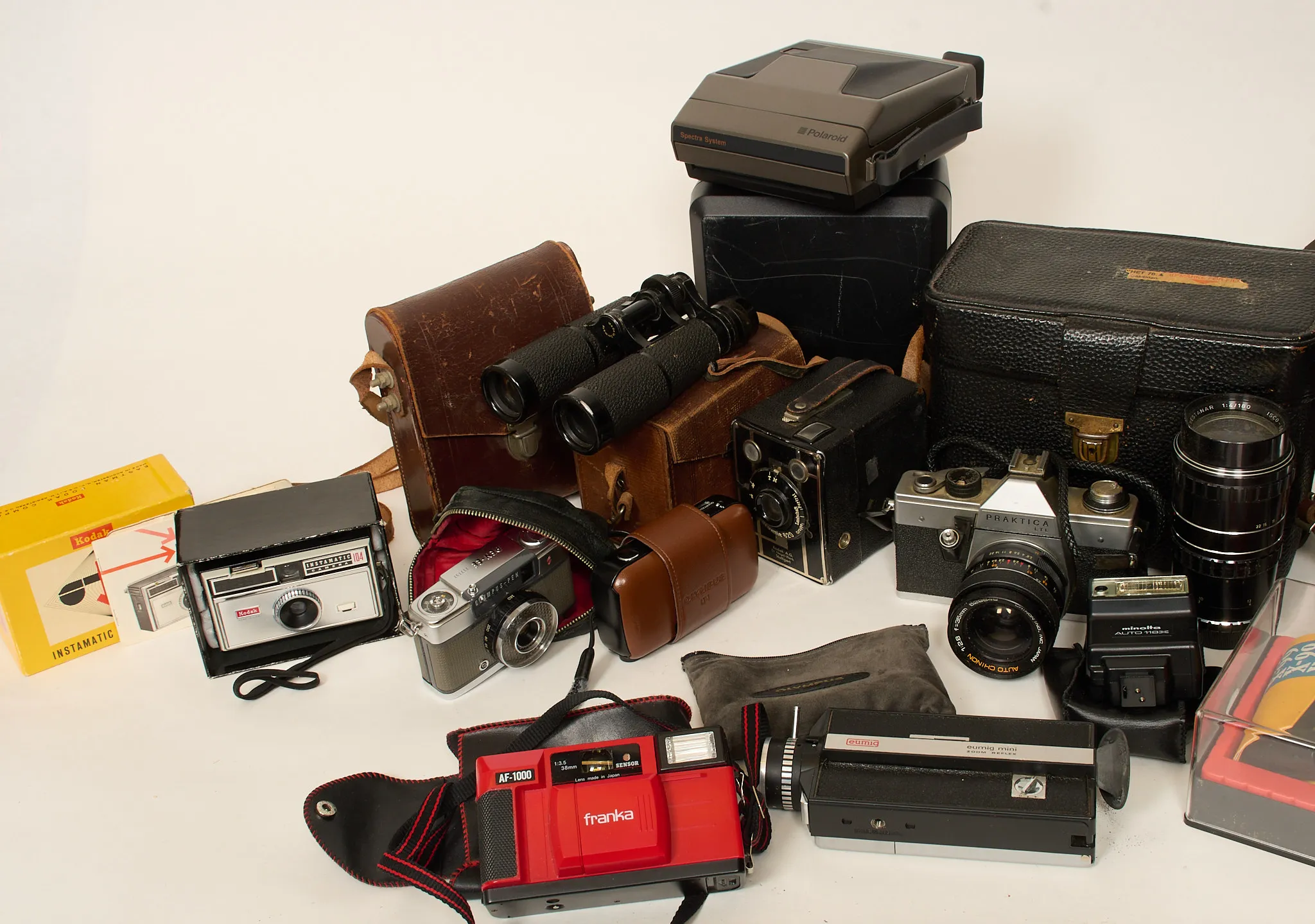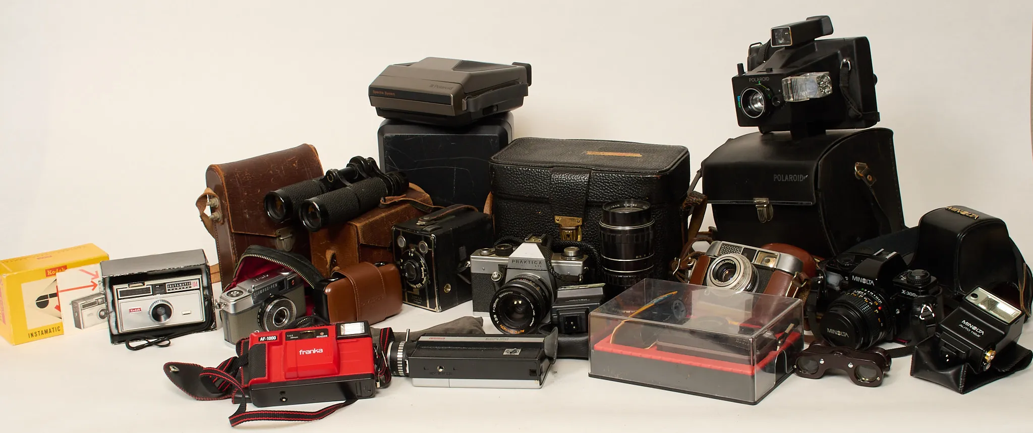 Bl.a. Olympus LT-1, Polaroid, Kodak, Voigtländer, Minolta x 300S blixtaggregat m.m. Ej funktionstestad.