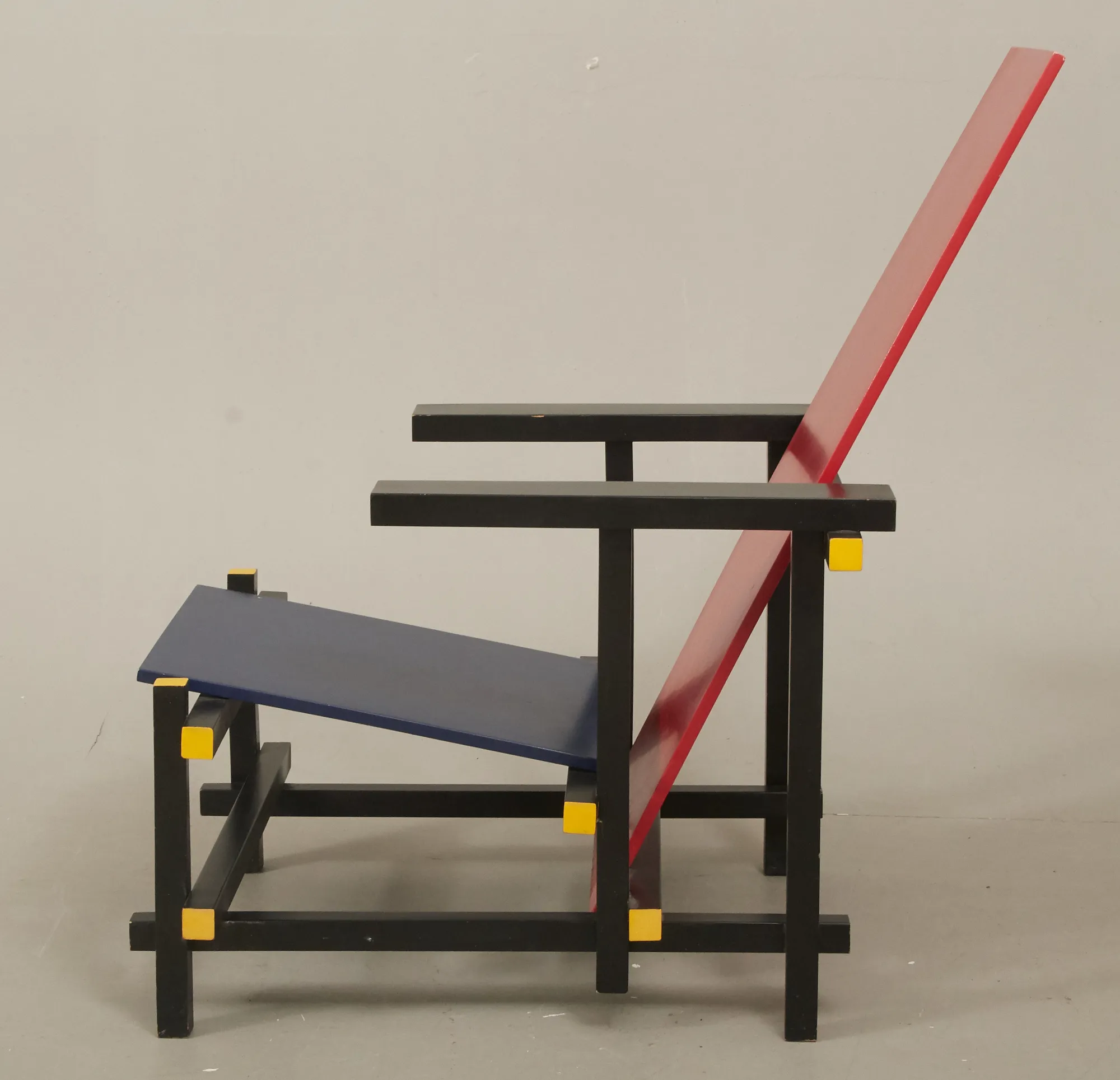 152. Karmstol, "Red and blue chair" , efter Gerrit Rietveld Cassina