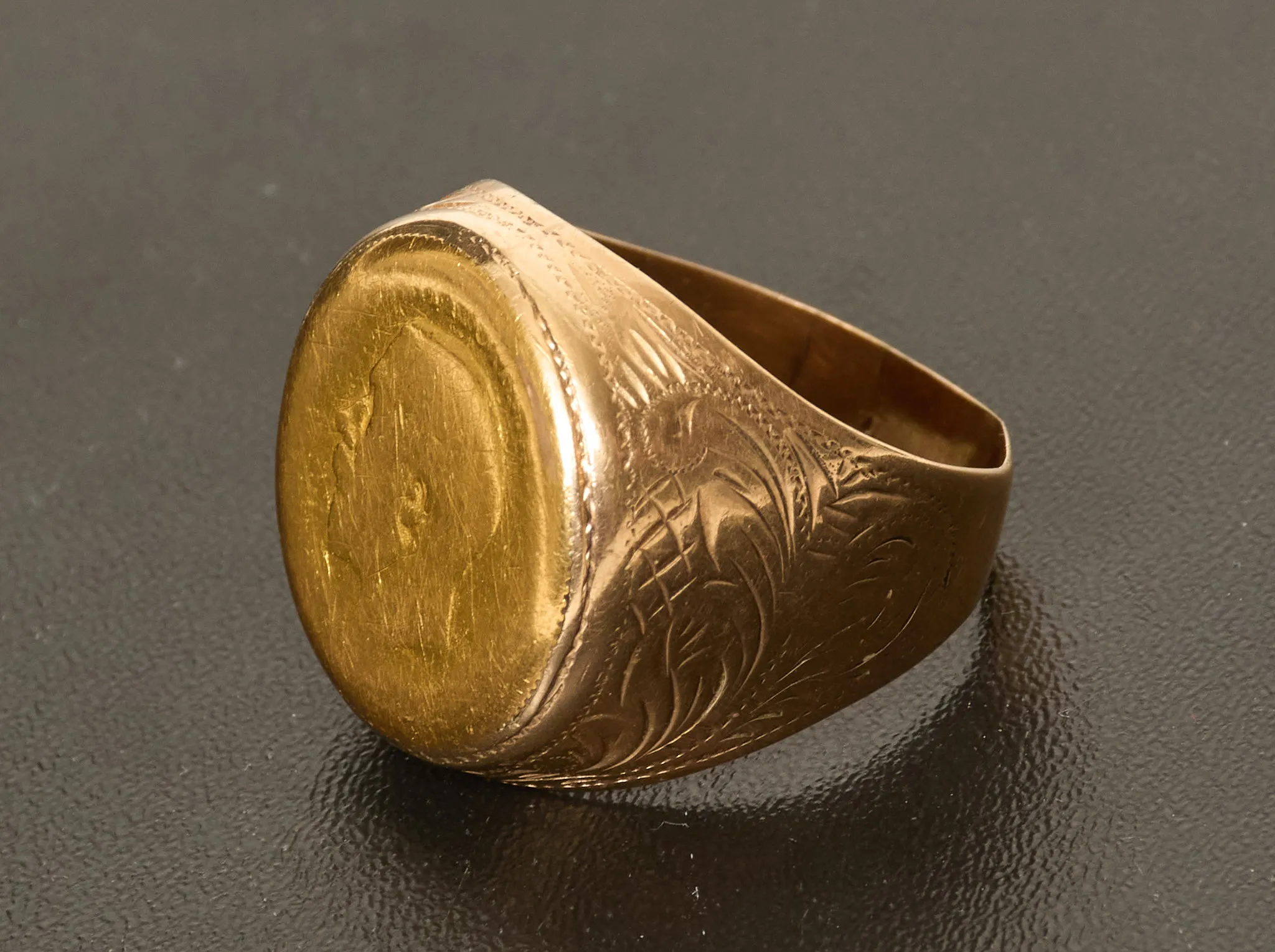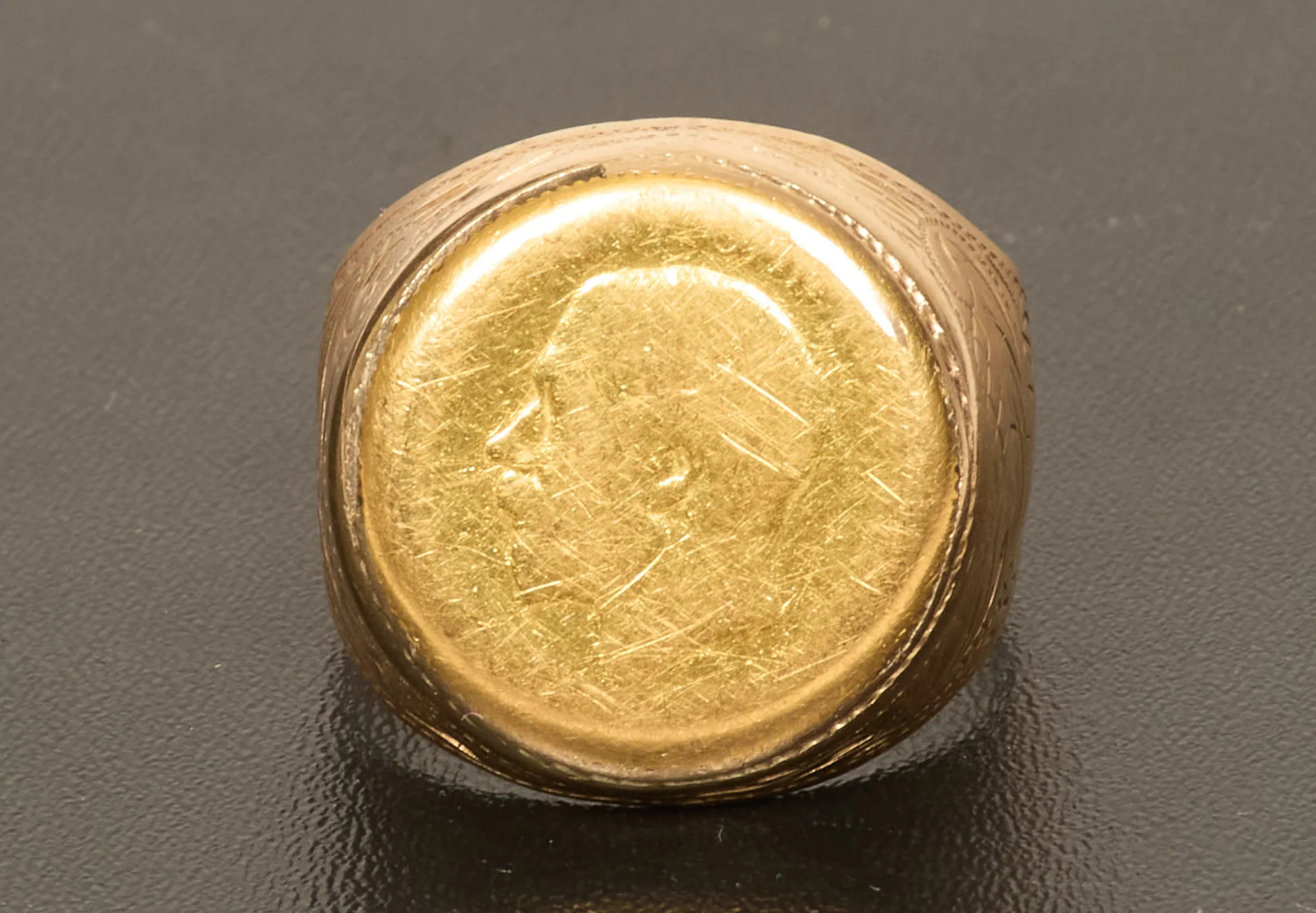 Med infattad mynt i 21-k guld, strl 20, vikt 12,2 gram. Detta objekt förvaras inte i auktionssalen, för visning kontakta kundtjänst