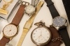 Herr, Tissot anto, diam 35 mm, Zebra, diam 38 mm, defekt, Certina quartz, diam 38 mm. Fickur Zenith, Svea, fungerar, mormorsur, defekt. Dam, Tissot, Seiko m.m. slitage, skador.
