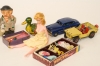 Spelande clown, fungerar, Jeep, Arnold, slitage, plåtbil, JNF Super Evergreen med accessoarer m.m. slitage, skador.