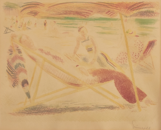 494. Litografi, "På stranden", Isac Grünewald