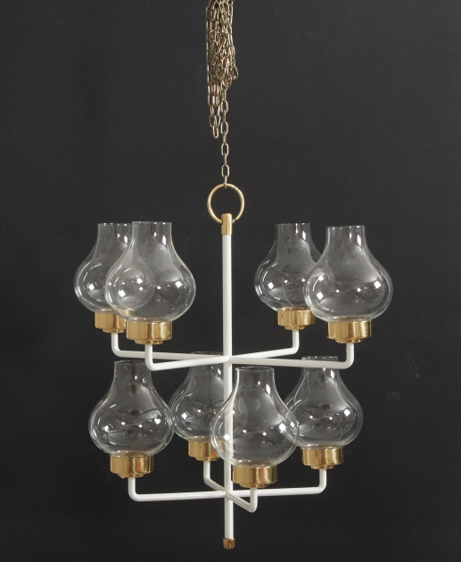 Atelje Lyktan, höjd exkl kedja 44 cm. 8 hållare för levande ljus med kupor, gott skick