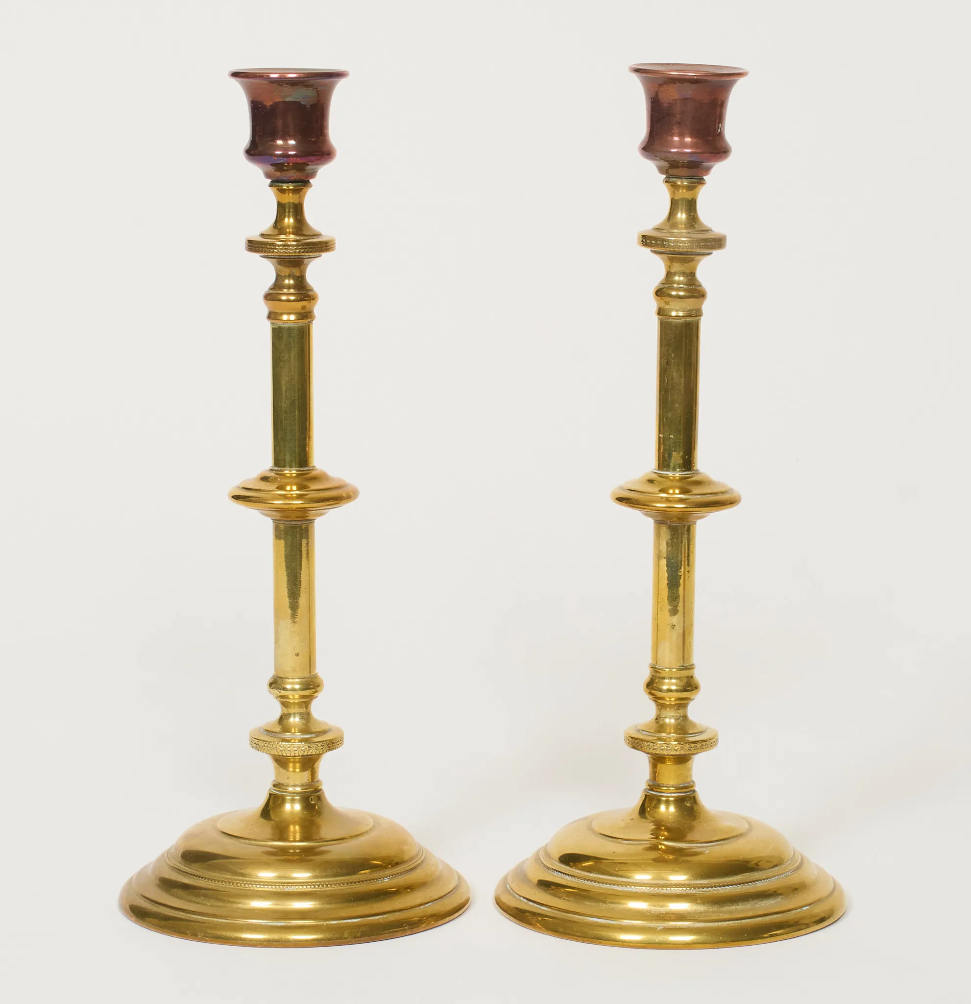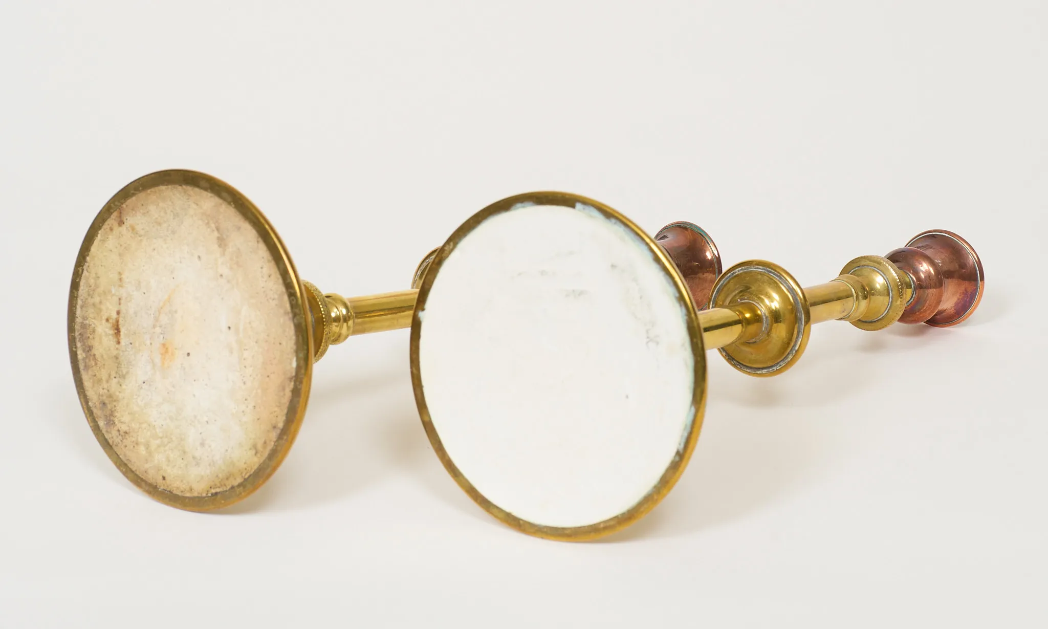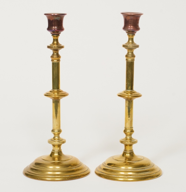 Ett par, mässing ,samt koppar, höjd 25 cm, gott skick