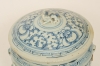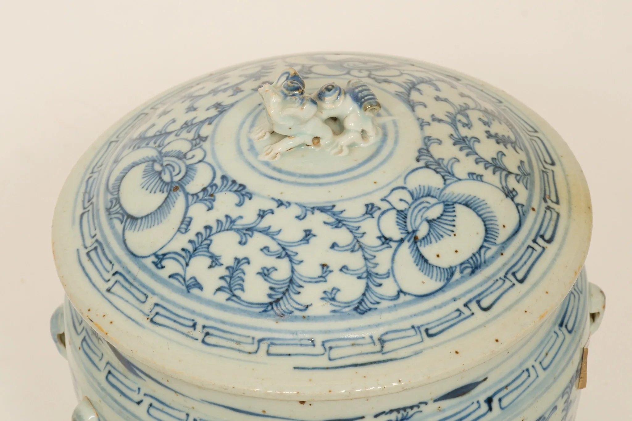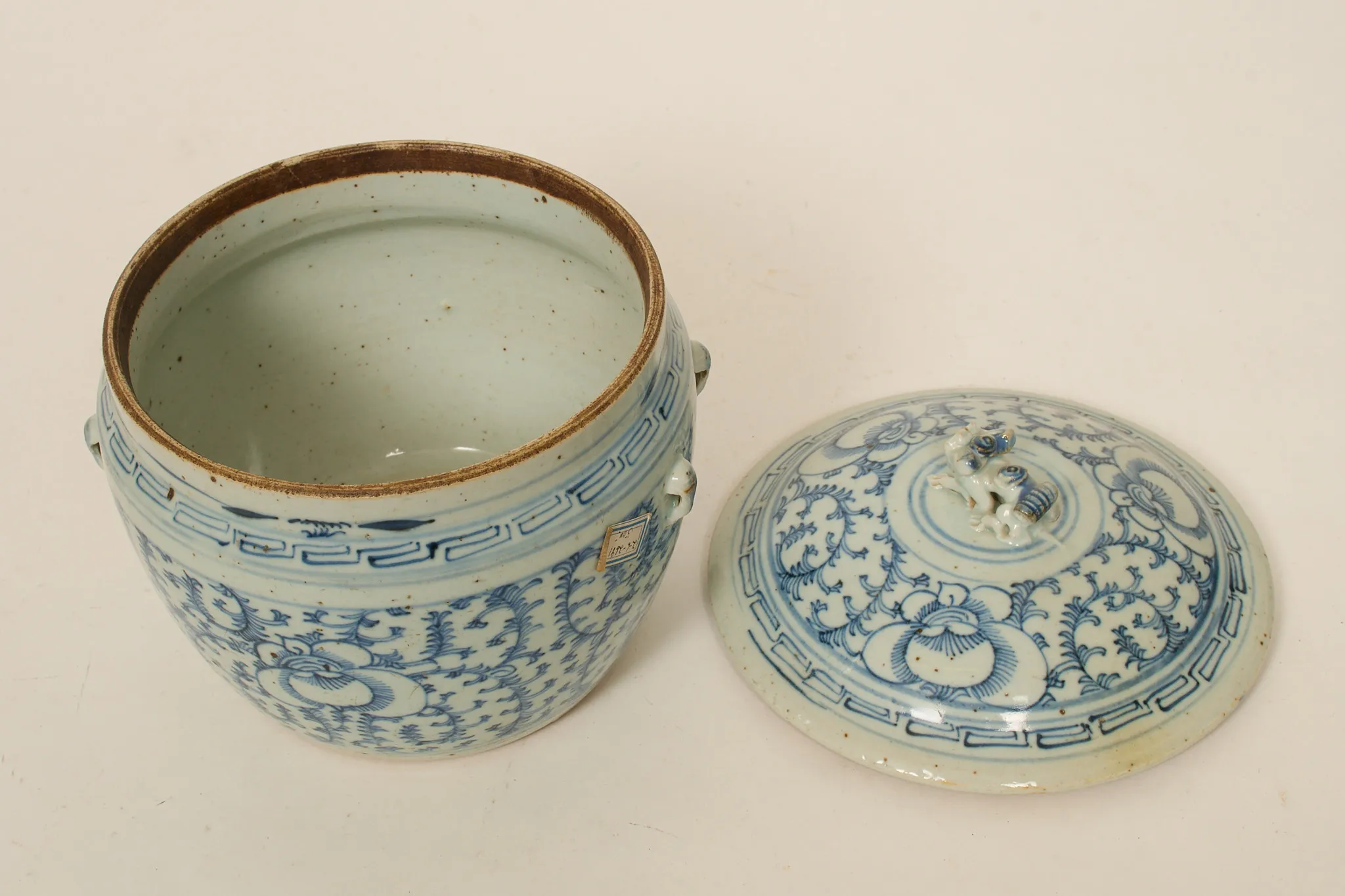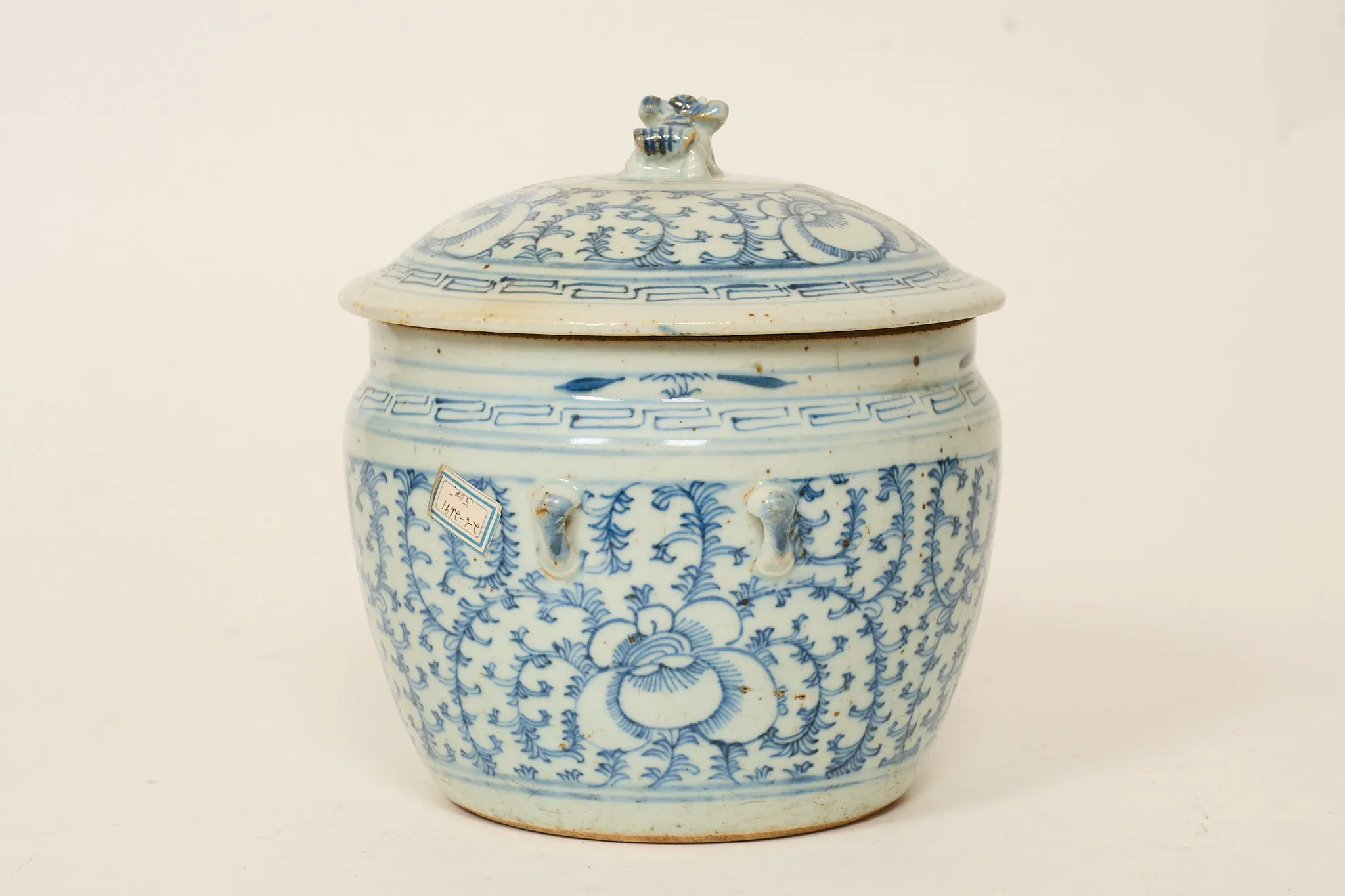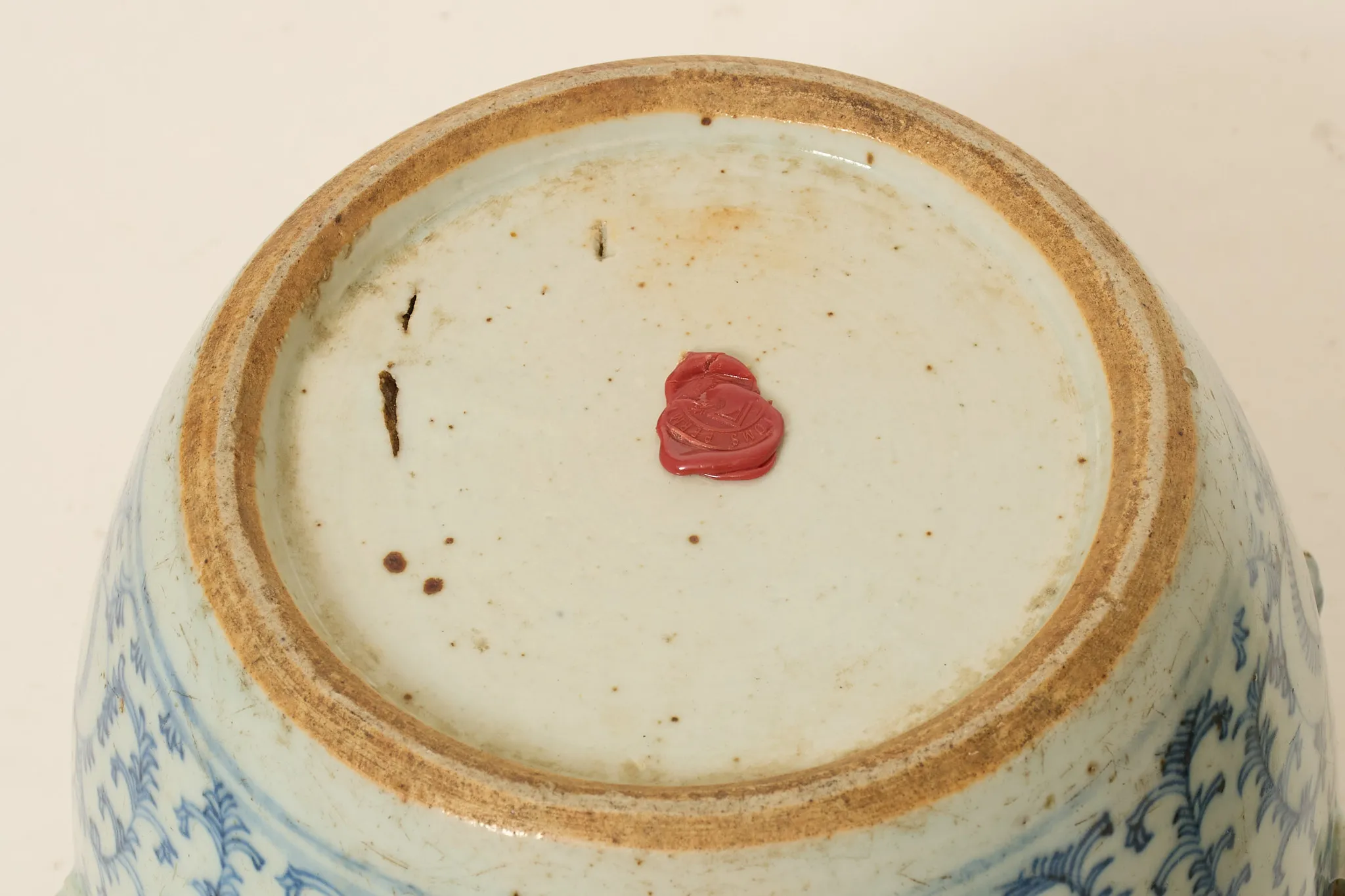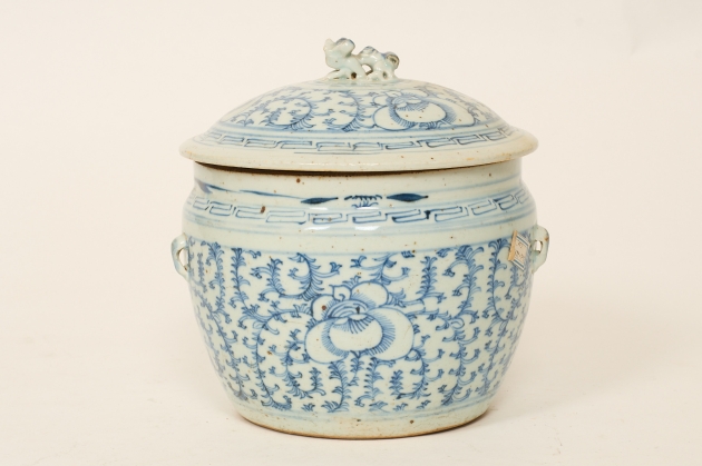 Dekor i underglasyrblått, höjd ca 20 cm, bruksslitage, tillverkningsdefekter.