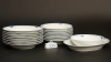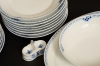 8 + 8 tallrikar, diam ca 22 - 25,5 cm, en skål, ett uppläggningsfat, samt salt/pepparkar. Några delar II:a sortering, smärre bruksslitage.