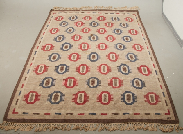 Monogramsignerad, ca 302 x 187 cm, bruksslitage, fläckar förekommer.