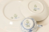 7 koppar, med 8 fat, modellnr 298, 2 assietter, modellnr 180, sockerskål, modellnr 239, samt 3 delar ströare m.m. Bruksslitage, 2 delar II:a sortering.