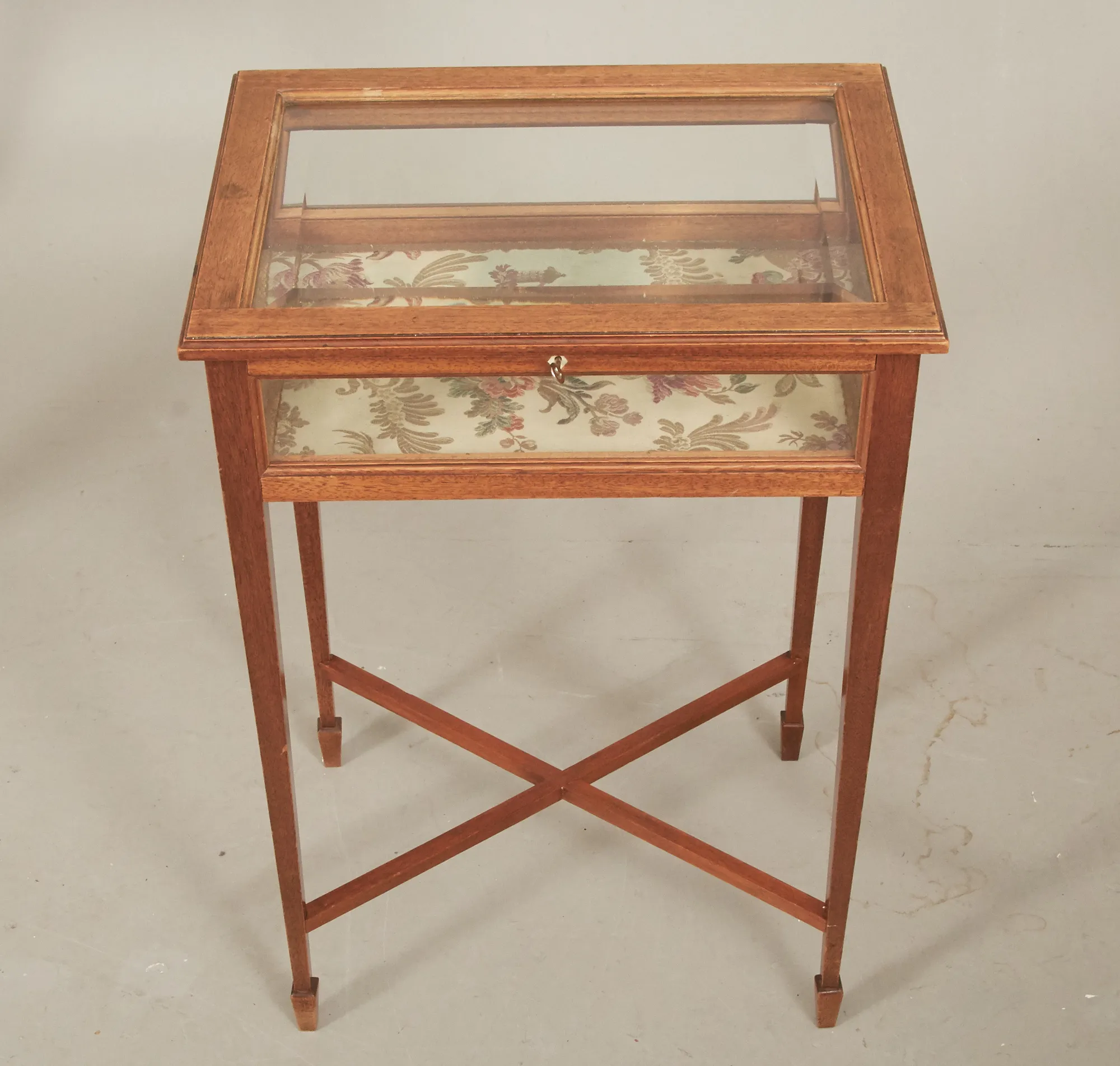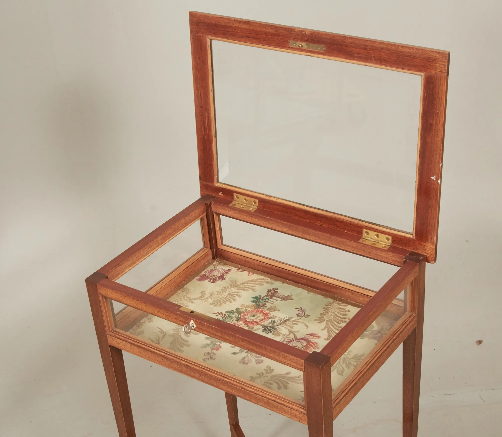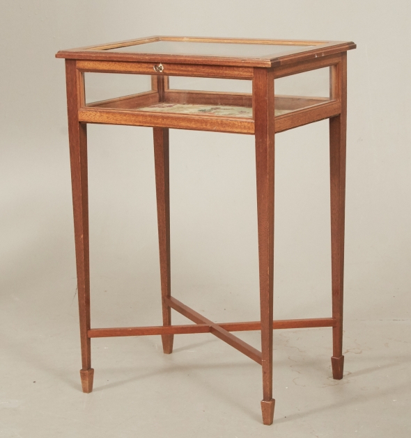 Alex Lundgrens Möbelverkstad, Åtvidaberg, 1938, öppningsbar lucka med fasettslipat glas, glasade sidor, kopplade ben. 45 x 33 cm, höjd 66 cm, nyckel finns. Åldersrelaterat bruksslitage.