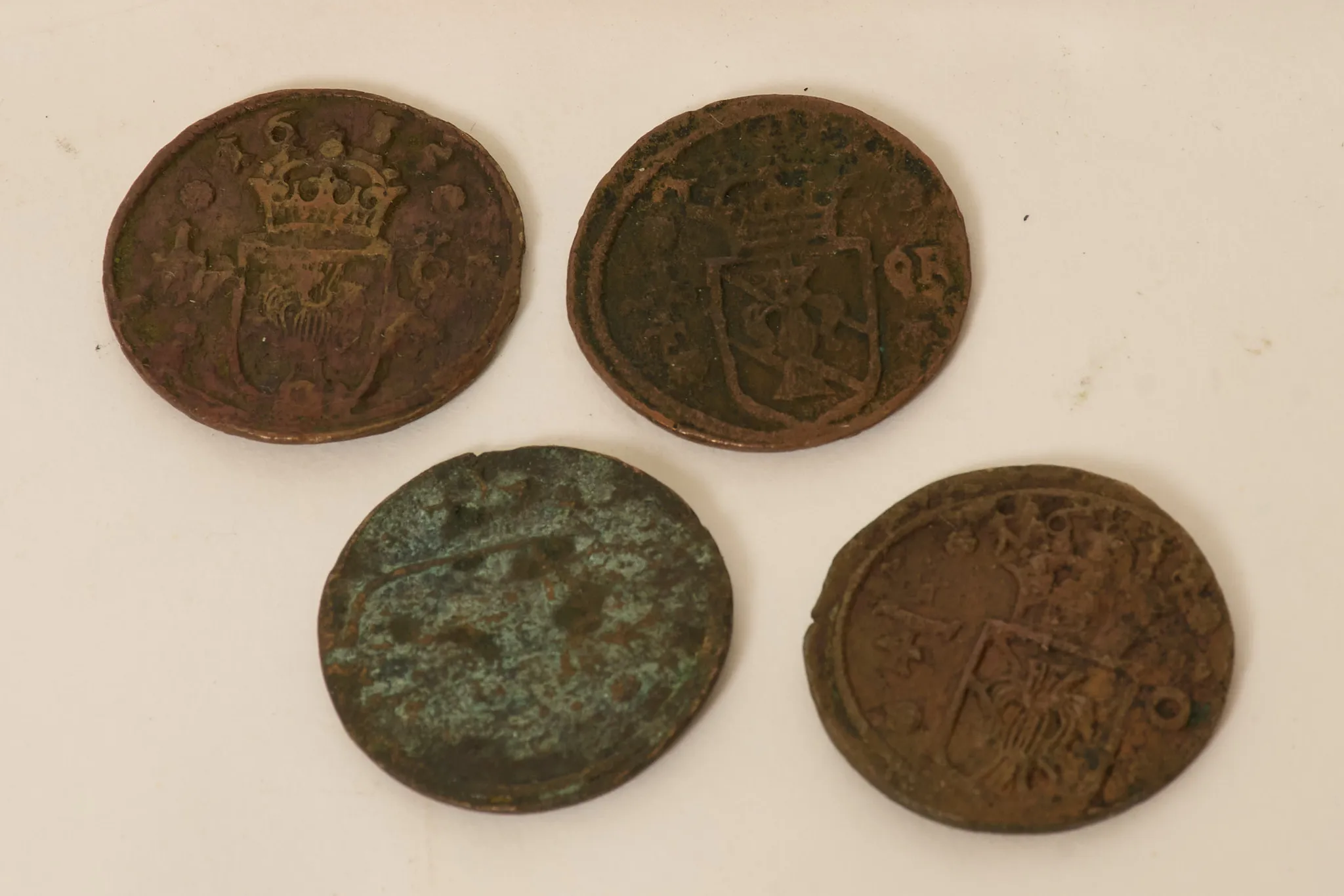 Sverige från Drottning Kristina 1600-talet till Oscar I 1800-talet samt diverse silvermynt och utländska mynt.