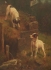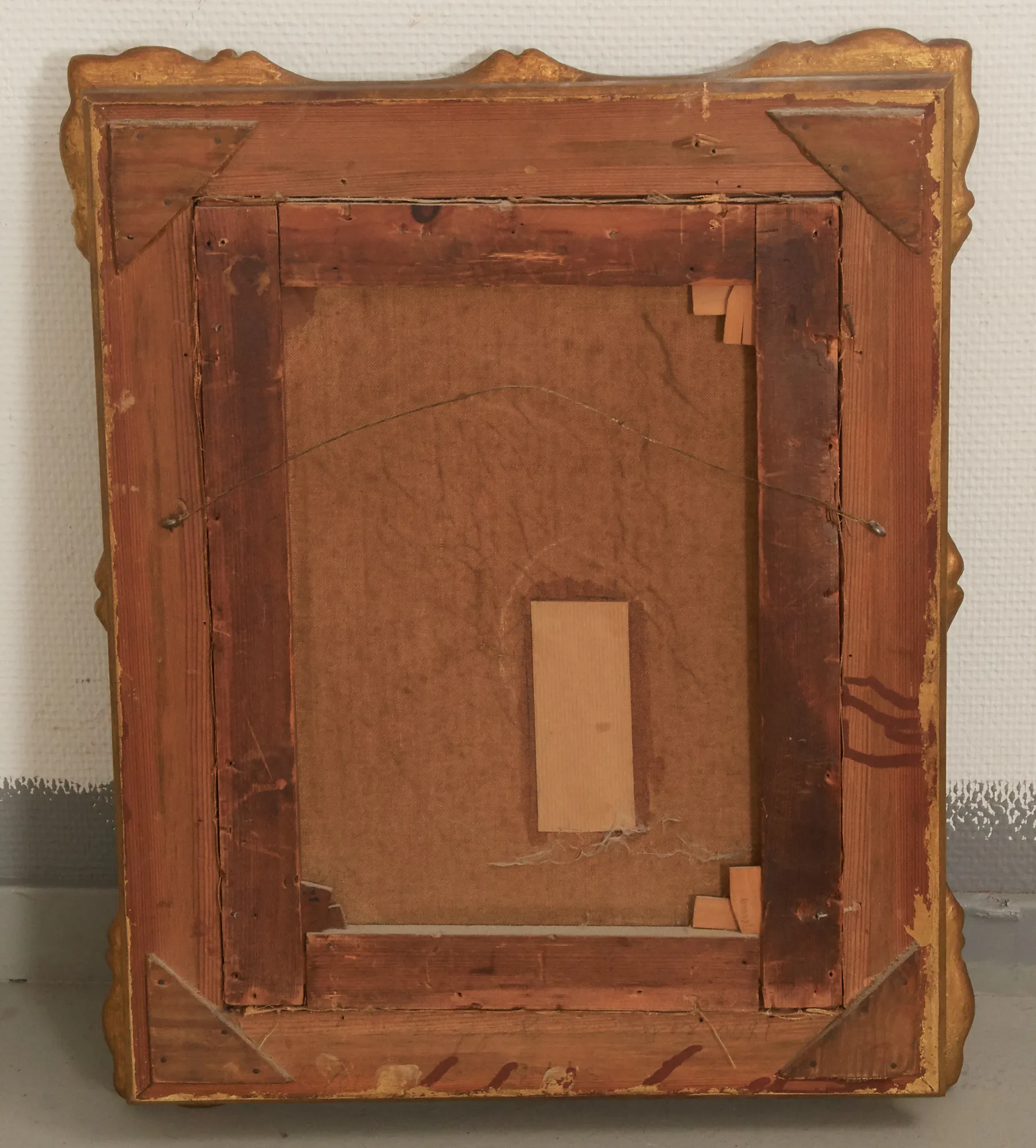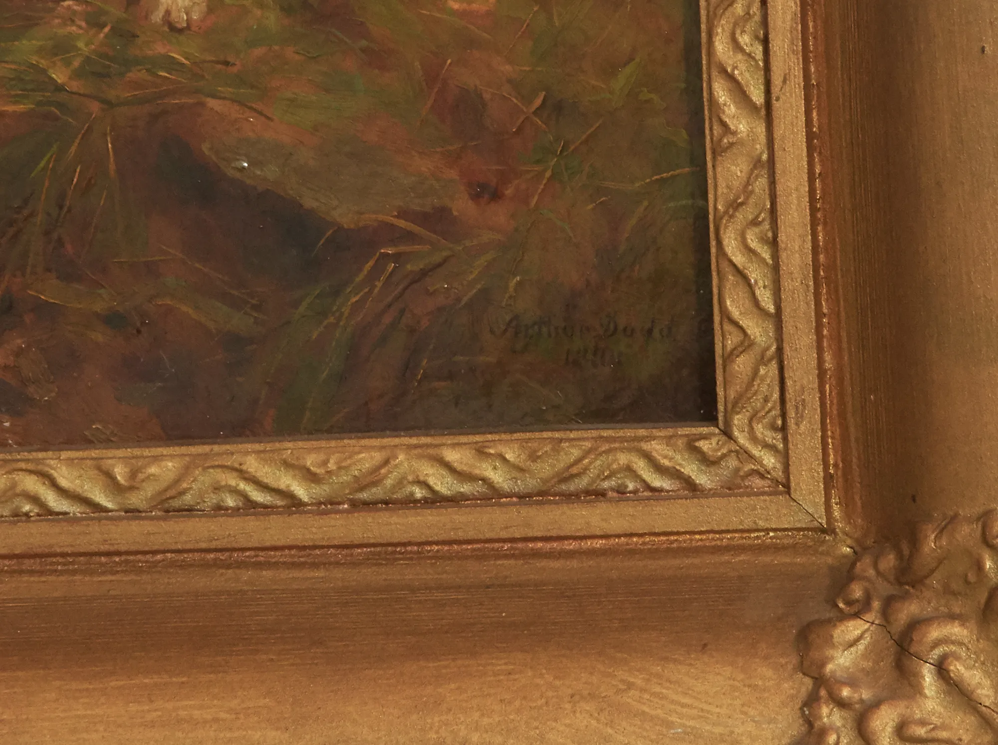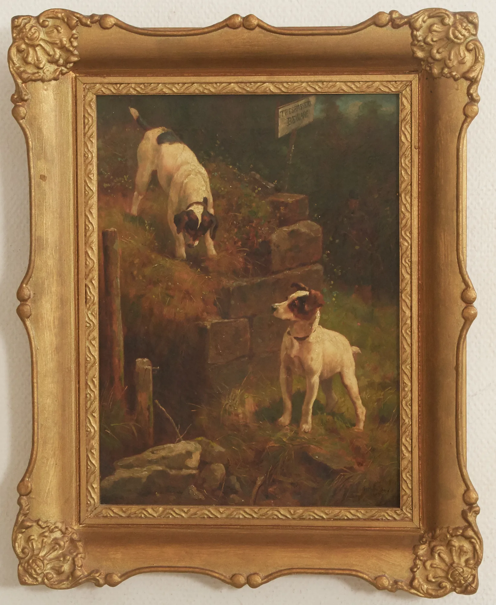 Motiv av hundar, signerad, samt daterad 1888 ?, fernissad duk, bildmått 39 x 28, duk något krackelerad.