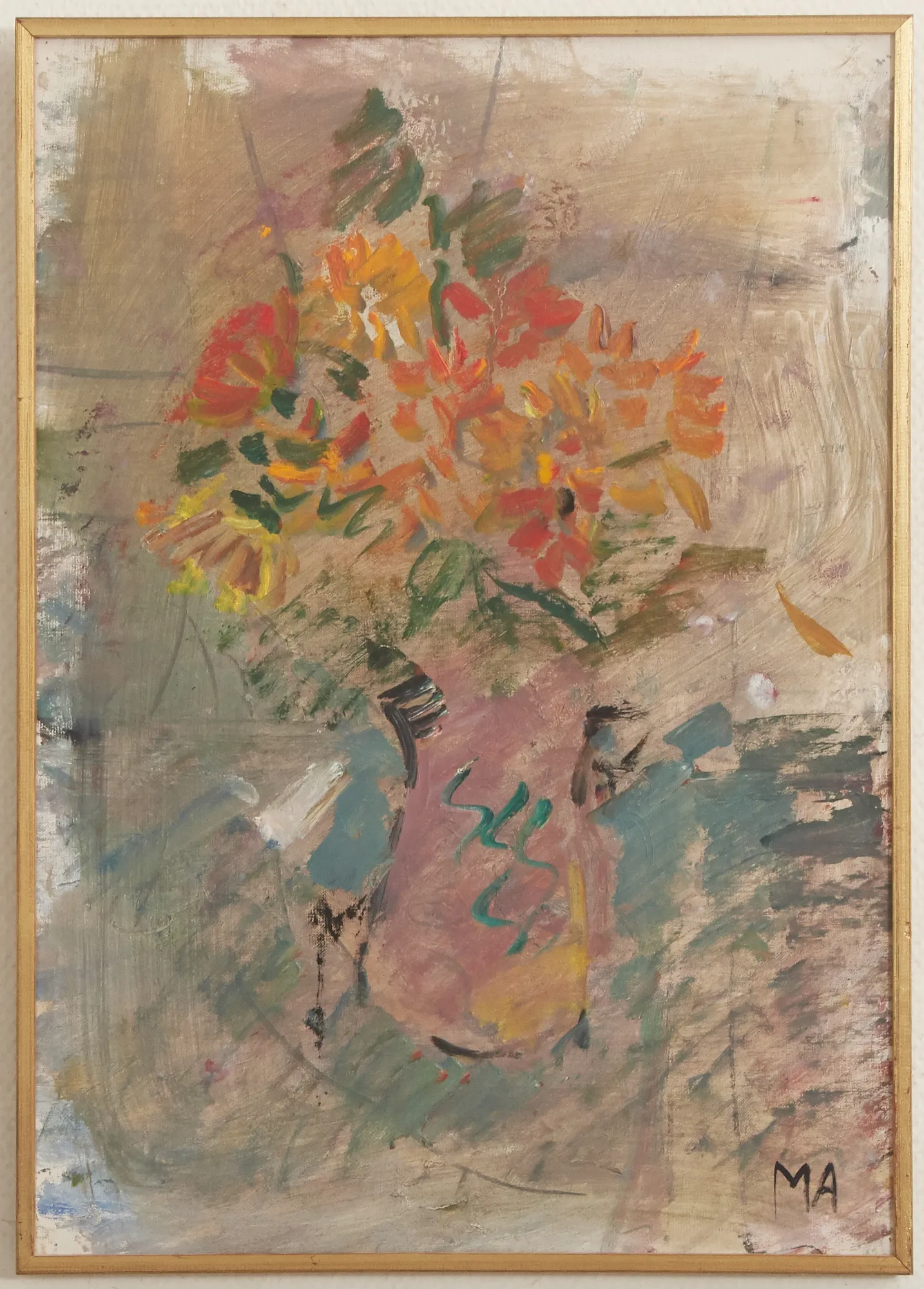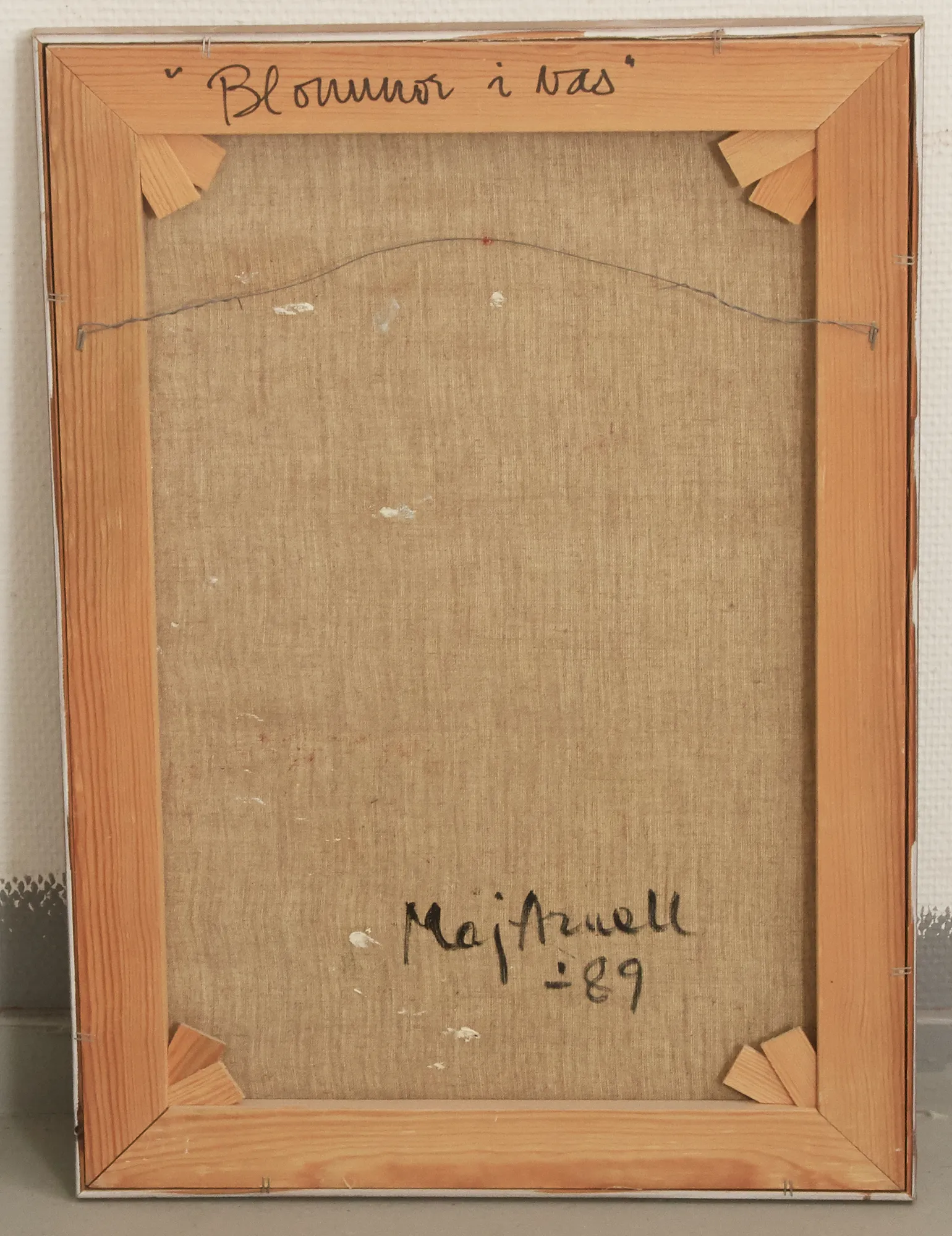 "Blommor i vas", mongramsignerad "MA", signerad, samt daterad a'tergo 1989, 57 x 41 cm