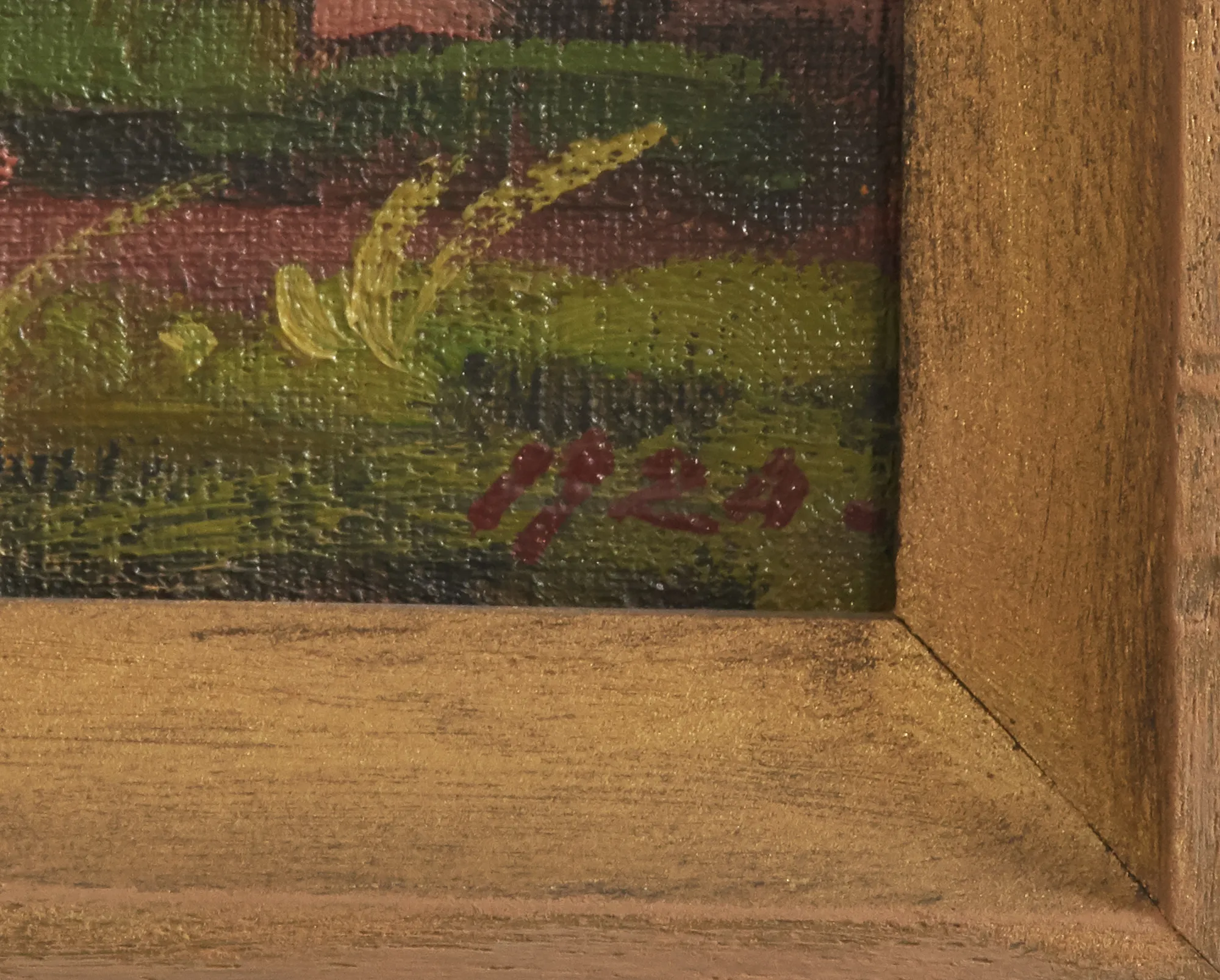 Gårdsmotiv, signerad, bildmått 35 x 41 cm.