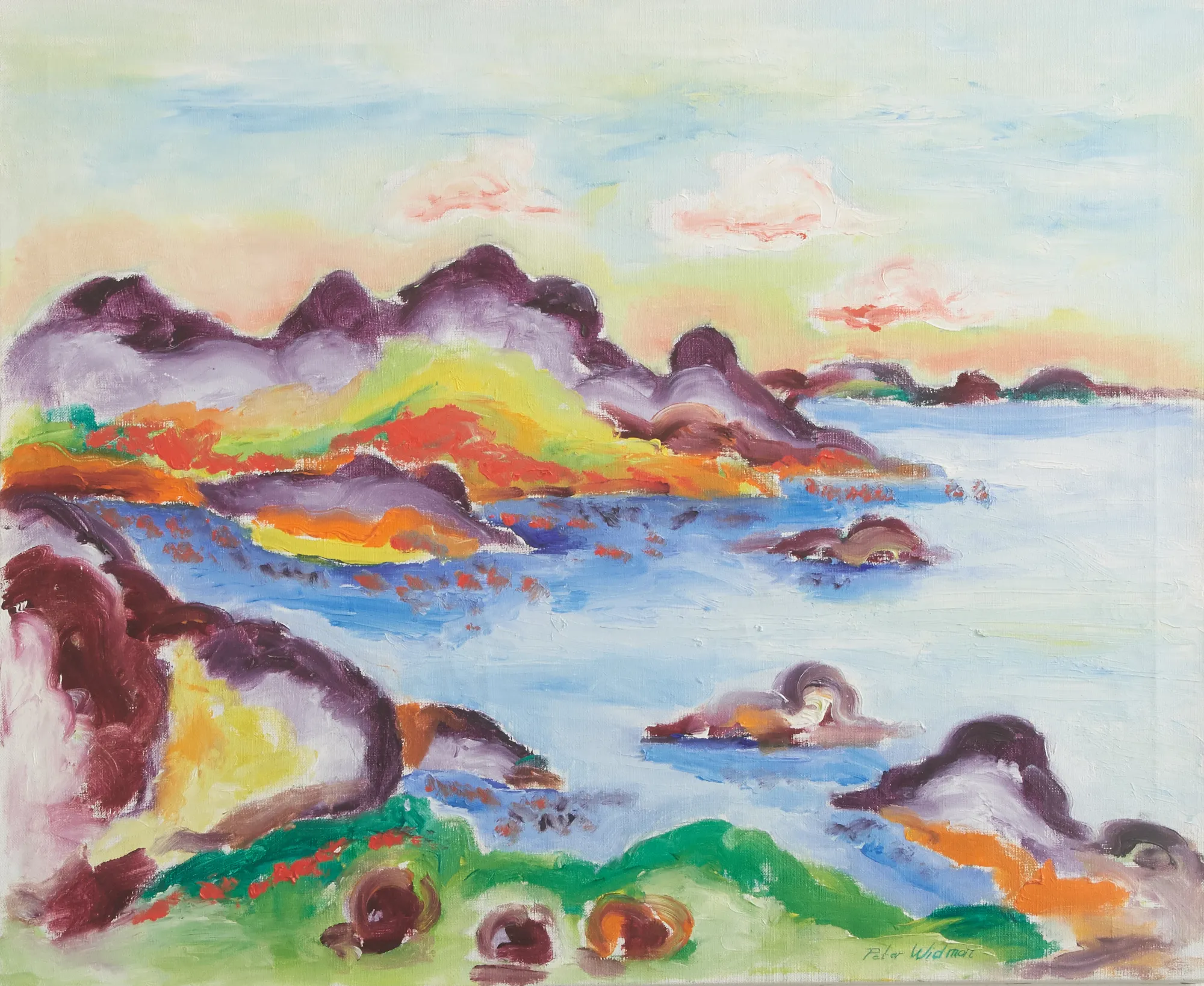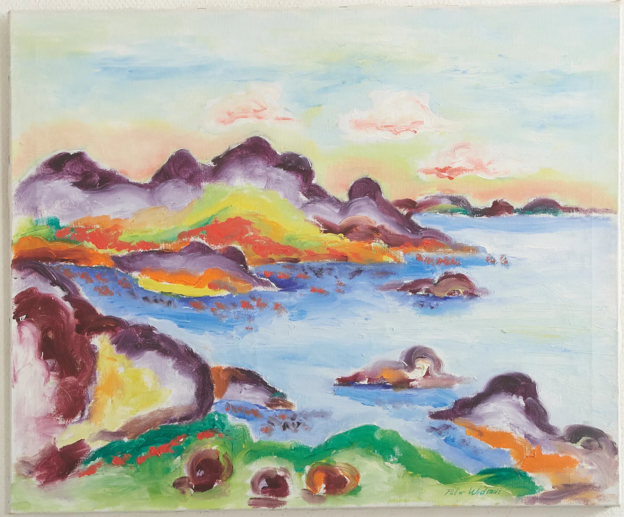 Vy över vatten, signerad, oramad, mått 60 x 73 cm.