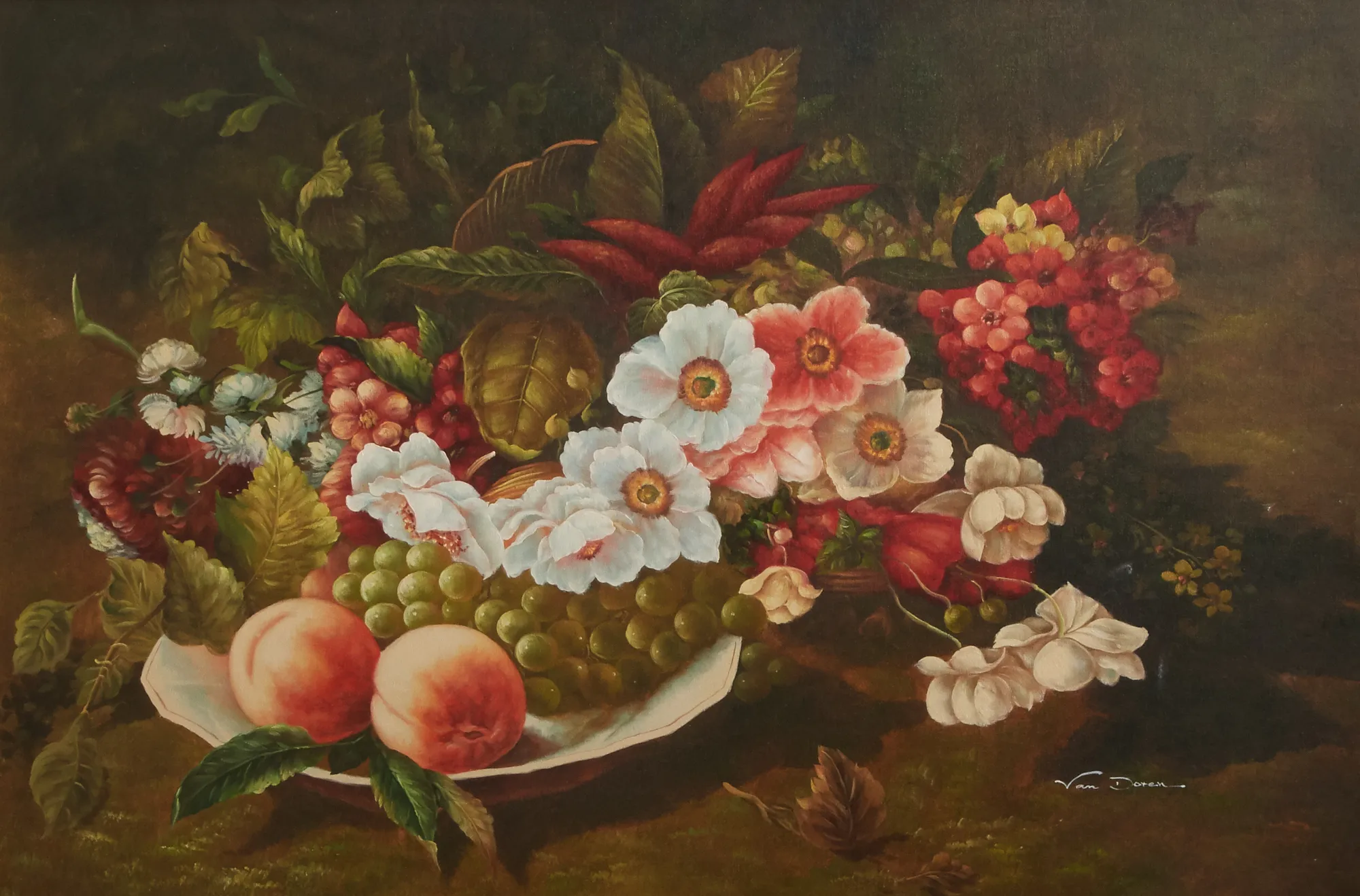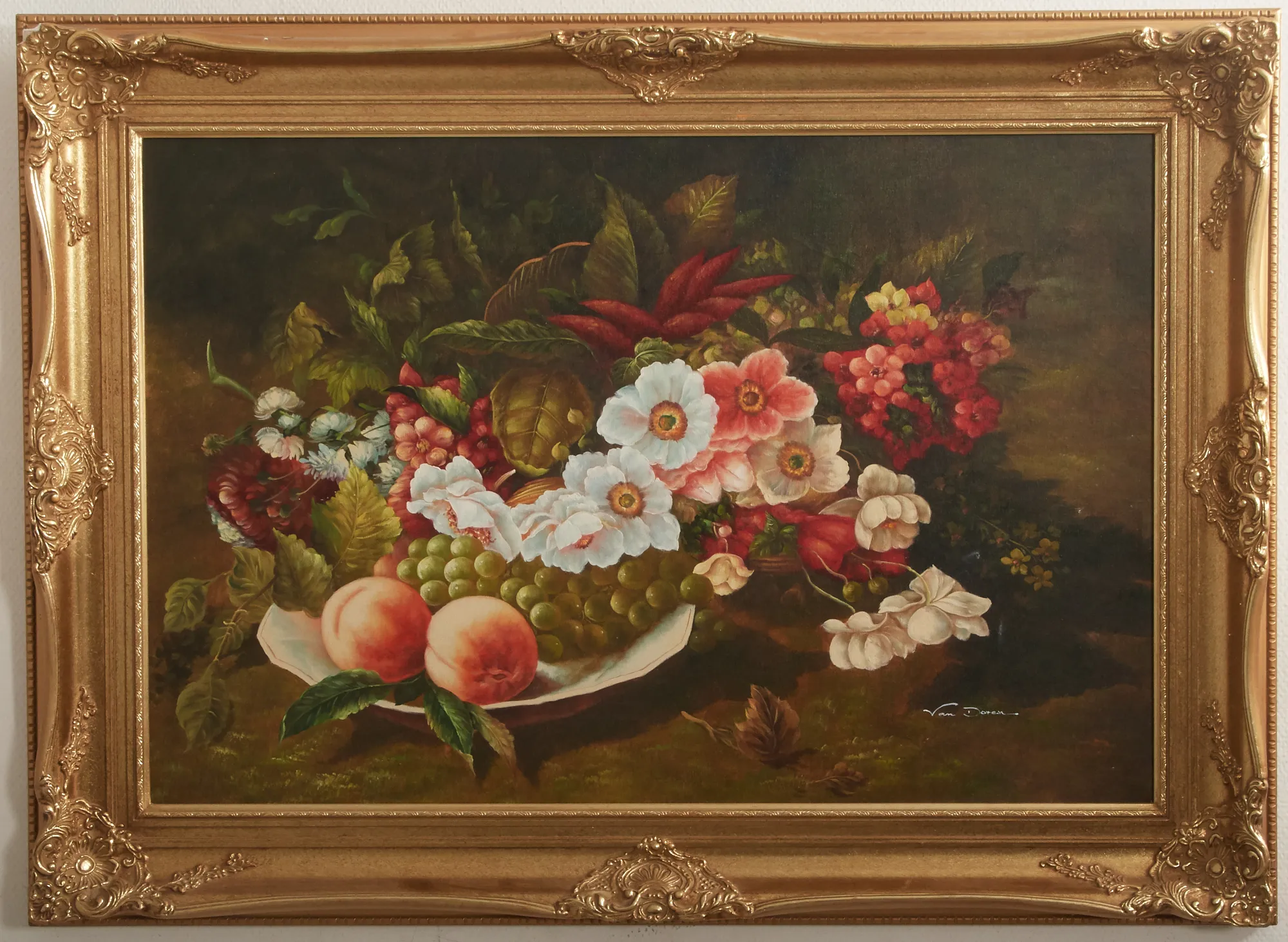 Blomsterstilleben, signerad, bildmått 60 x 90 cm.