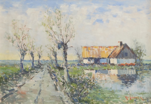 Gårdsmotiv, signerad, bildmått 45 x 65 cm.