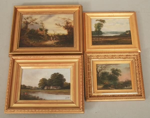 4 st, troligen England omkring sekelskifte 18/1900-tal, största rammått 35 x 47 cm, minsta 2 tavlor rammått 29 x 35 cm, 30x36 cm samt bildmått 16x20,5 och 19 x 25 bildmått.