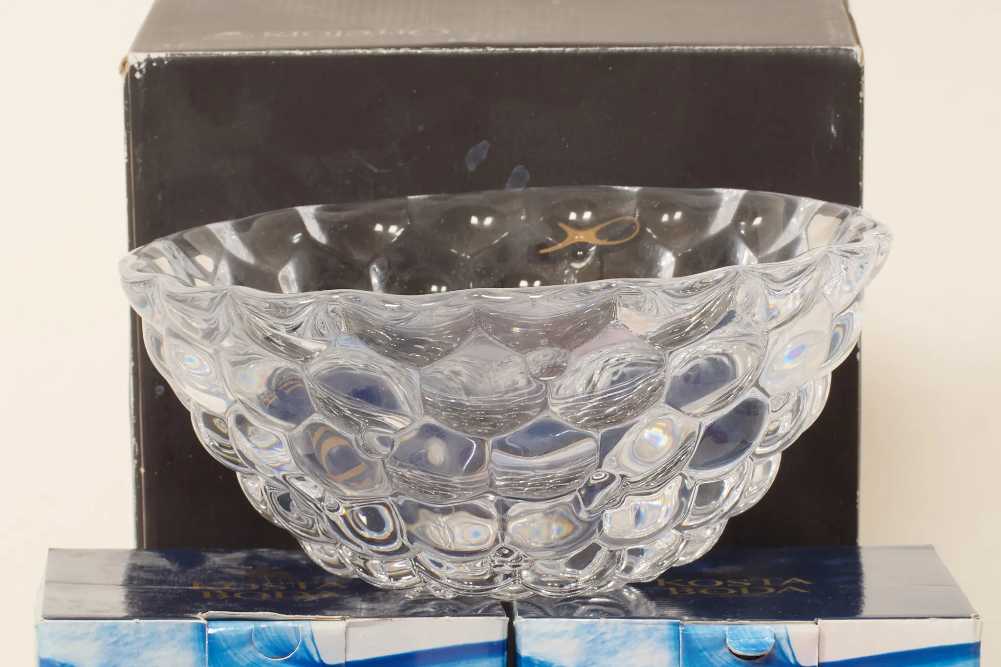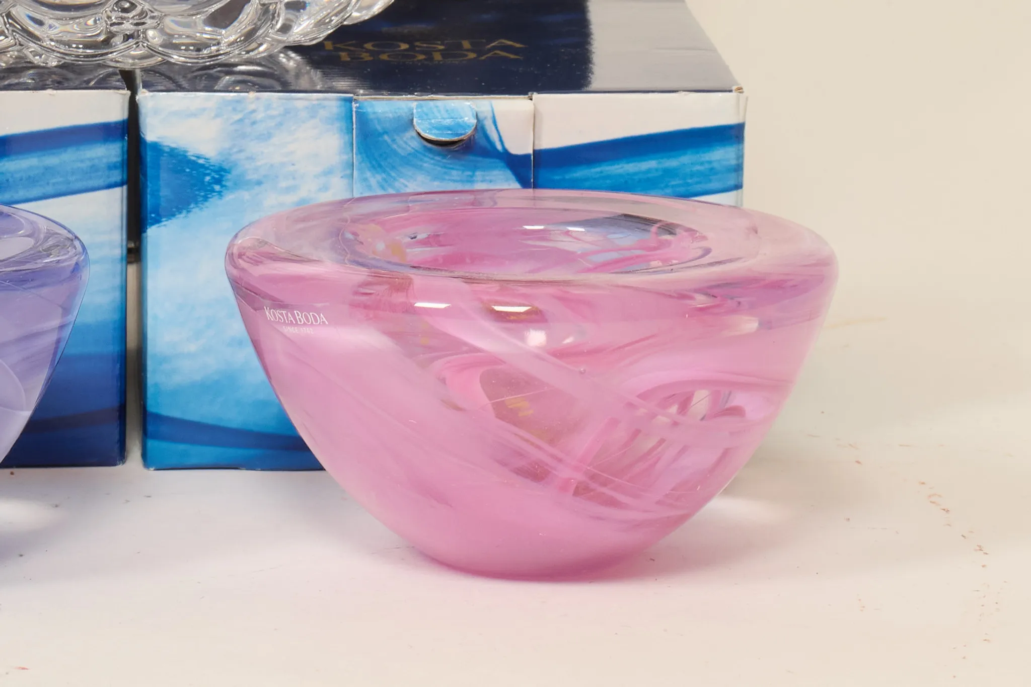 2 skålat, "Atoll", Anna Ehrner, diam 11,5 cm, samt skål "Raspberry", Orrefors, diam 21 cm, samtliga i originalförpackning. Fint skick.
