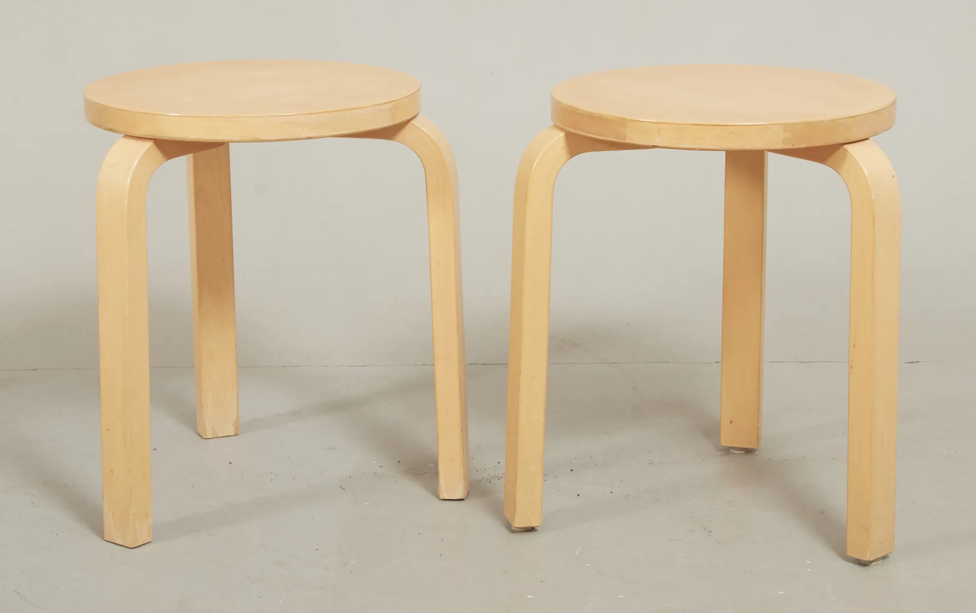 2 st, modell E60, björk, höjd 44 cm, bruksslitage.