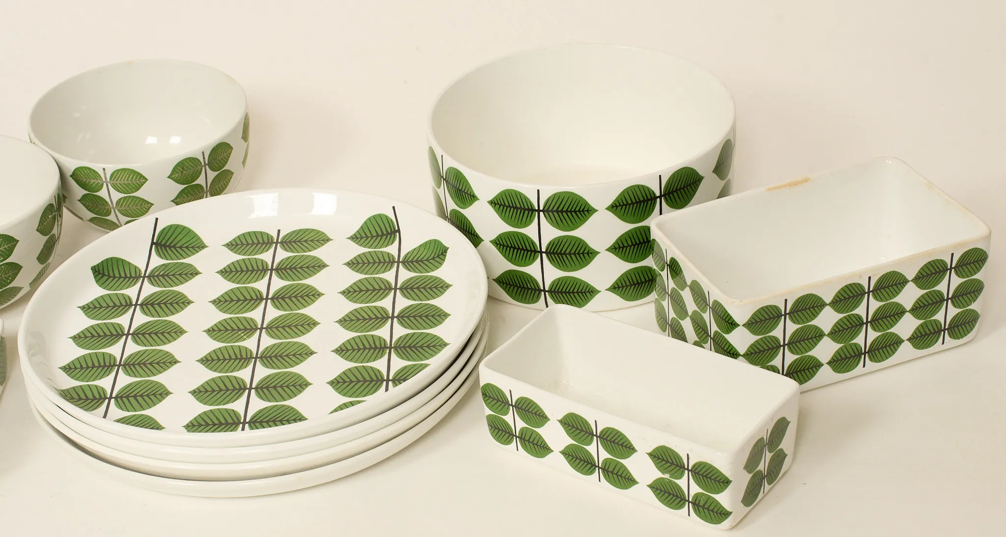12 delar, längsta längd 24 cm, högsta höjd 9 cm, bruksslitage, visst dekorslitage.