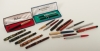13 st reservoarpennor bl a Parker, Everskerp, Big Ben, Skribent, Oxford, Penol, Miller mm. 3 st kulpennor Parker. 3 st Ballograf.