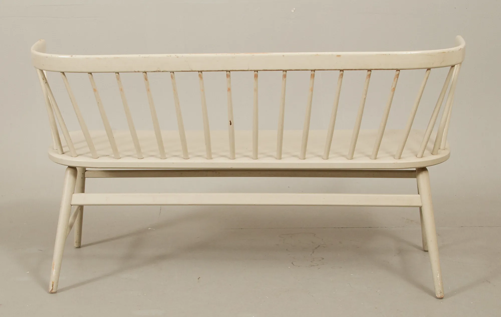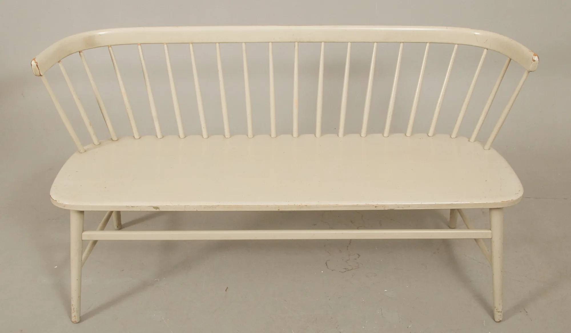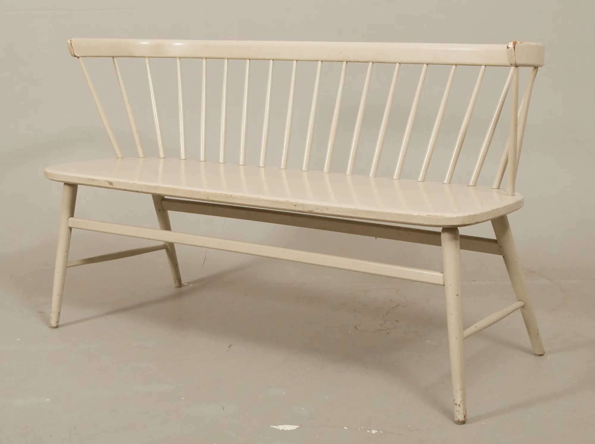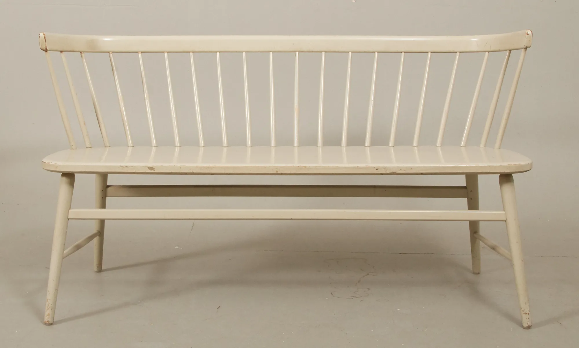 Bemålat trä, längd 118 cm, sitthöjd 44 cm, bruksslitage, färgskav.