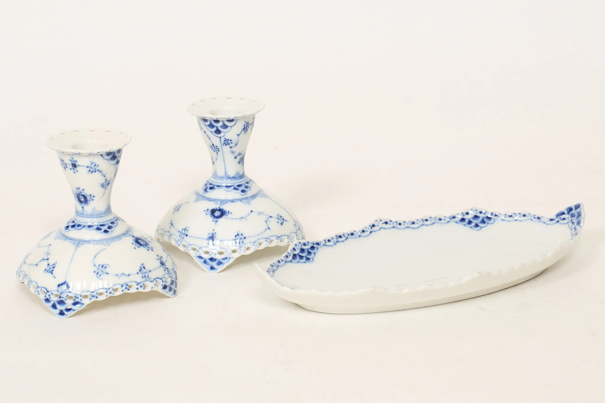 Ljusstakar, ett par, modellnr 1138, samt fat, "Princess", modellnr 111/613, fat II:a sortering, smärre bruksslitage.