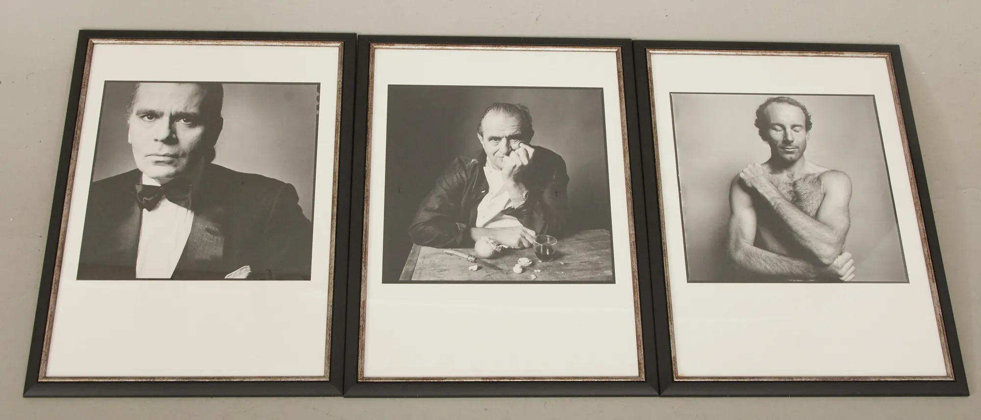 3 st. Porträtt av Karl Lagerfeldt fotograf Patrick Jacob, Paul Bocuse fotograf Ben Oyne, Ingemar Stenmark fotograf Hans Gedda. 58x41 cm. Obetydligt slitage.