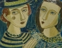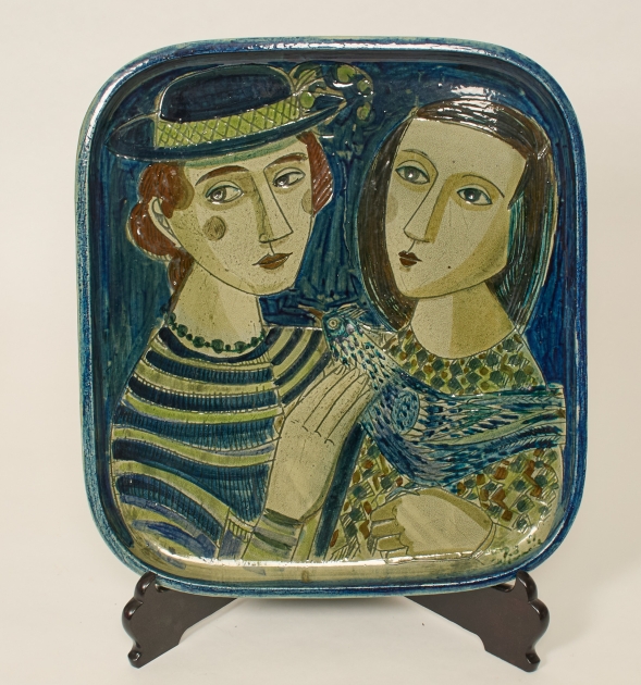 Glaserat stengods, motiv av 2 kvinnor, signerad Rörstrand, Stålhane, 44,5 x 40 cm, smärre bruksslitage.