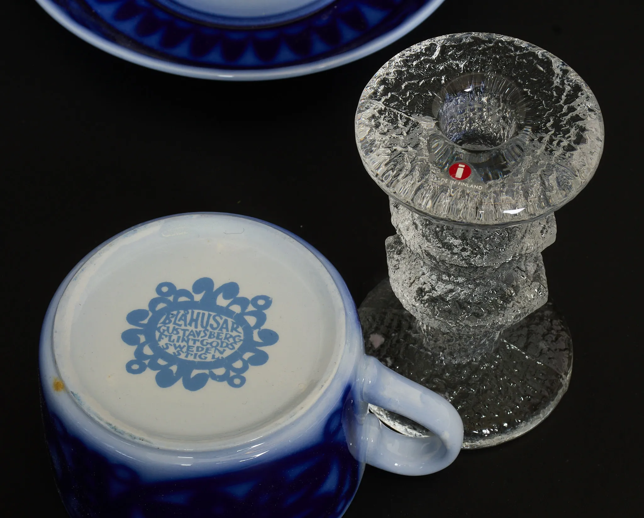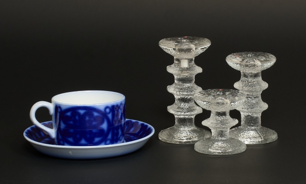 3 st ljusstakar, Festivo, höjd 8,5 - 15 cm, osignerade, tekopp "Blå Husar", gott skick