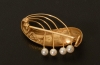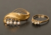 Ring med 3 st bergskristaller, strl 18 mm, tot. vikt 1,6 gram, bruksslitage, samt brosch med odlade pärlor, tot. vikt 2,5 gram, bra skick
