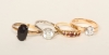 4 st, med bergskristaller, samt oädla stenar, strl. 16-17, tot. vikt 12 gram.