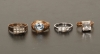 4 st, med pärla, akvamarin, samt bergskristaller, tot. vikt 11,1 gram, slitage. Detta objekt förvaras inte i auktionssalen, för visning kontakta kundtjänst