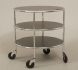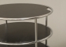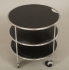 Nyare tillverkning, hjulförsedd stomme, i kromat stål, 3 skivor i svart laminat, diam ca 54 cm, höjd 57 cm, smärre bruksslitage.