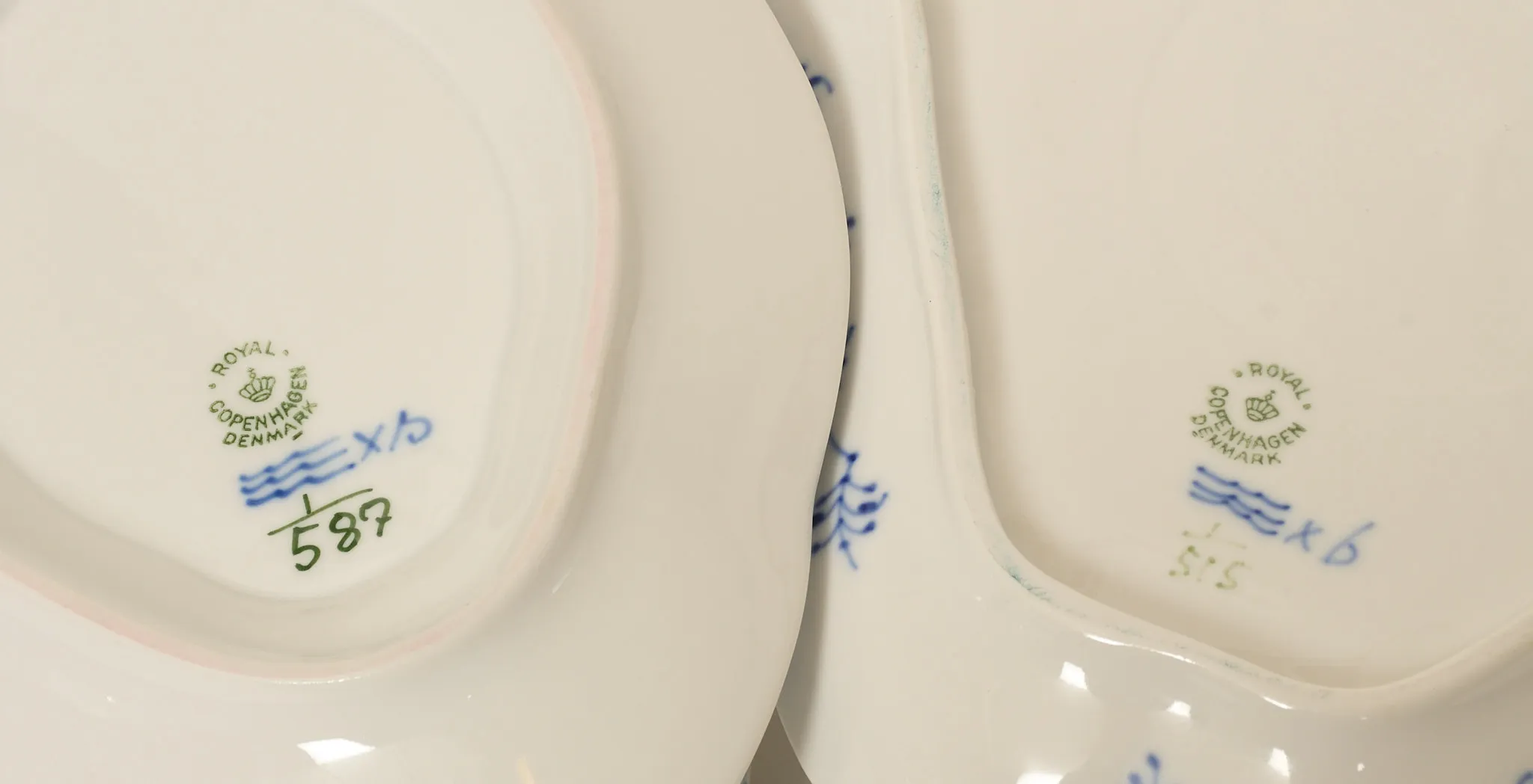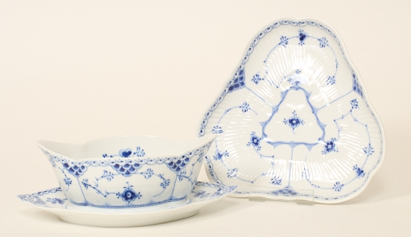 552. Såskanna, samt fat, "Musselmalet", Royal Copenhagen
