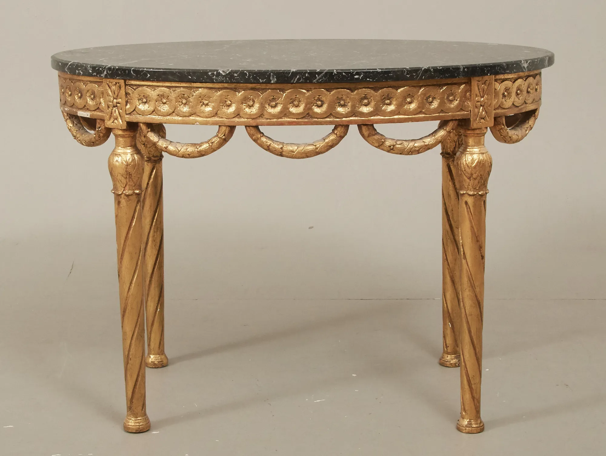 18/1900-tal, underrede i (senare) förgyllt trä med senare stenskiva, 92 x 60 cm, höjd ca 65 cm, bruksslitage.