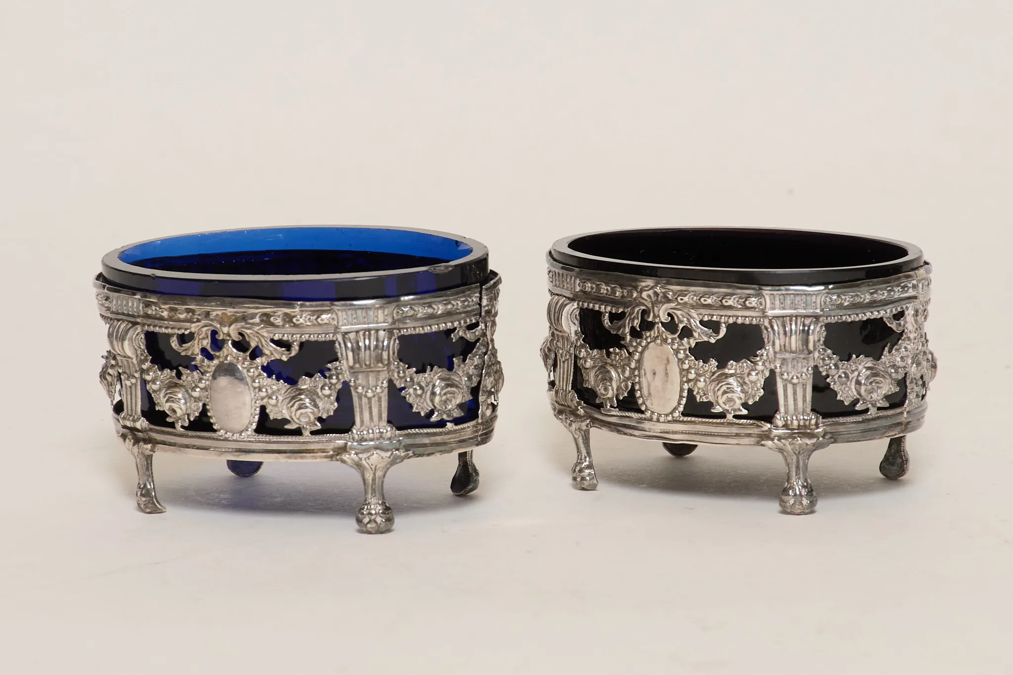 1800-tal, silver med insatser i glas, längd 8 cm, smärre bruksslitage, men mindre nagg förekommer på glasinsatser.