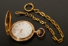 Tidigt 1900-tal, diam 52 mm, vikt 99,9 gram (innerlock i metall), smärre slitage, går vid fototillfället, kedja i gulddouble medföljer