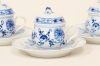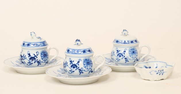 3 cremekoppar med lock, höjd 9 cm samt ett litet fat.