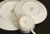 48 delar, 9 Mattallrikar, 11 assietter, 13 fat 12 koppar, 2 uppläggningsfat, sockerskål. Bruksslitage.