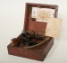 Omkring sekelskifte 18/1900-tal, förefaller komplett. Mått schatull 28 x 24 cm, åldersrelaterat bruksslitage.