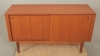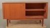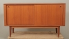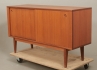 1960-tal, teakfaner, 2 skjutdörrar med bakomliggande förvaring, 128 x 42 cm, höjd 74 cm, smärre bruksslitage.