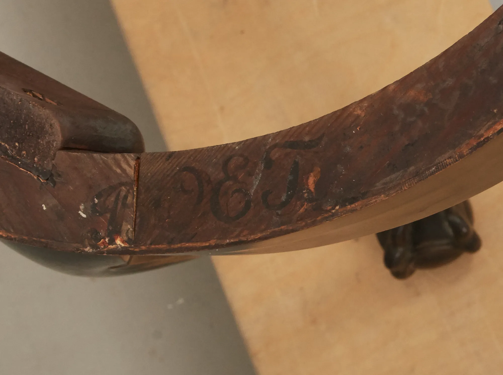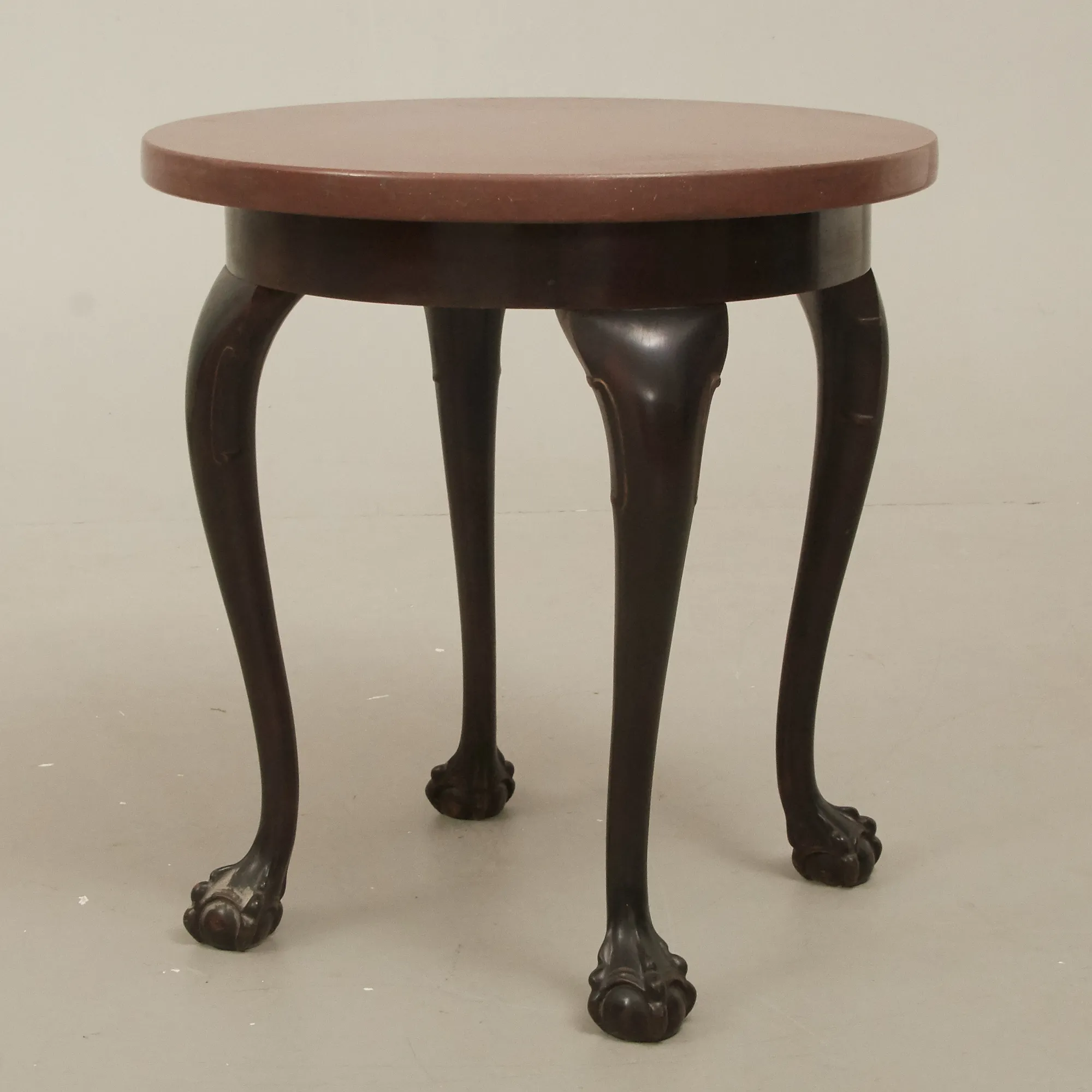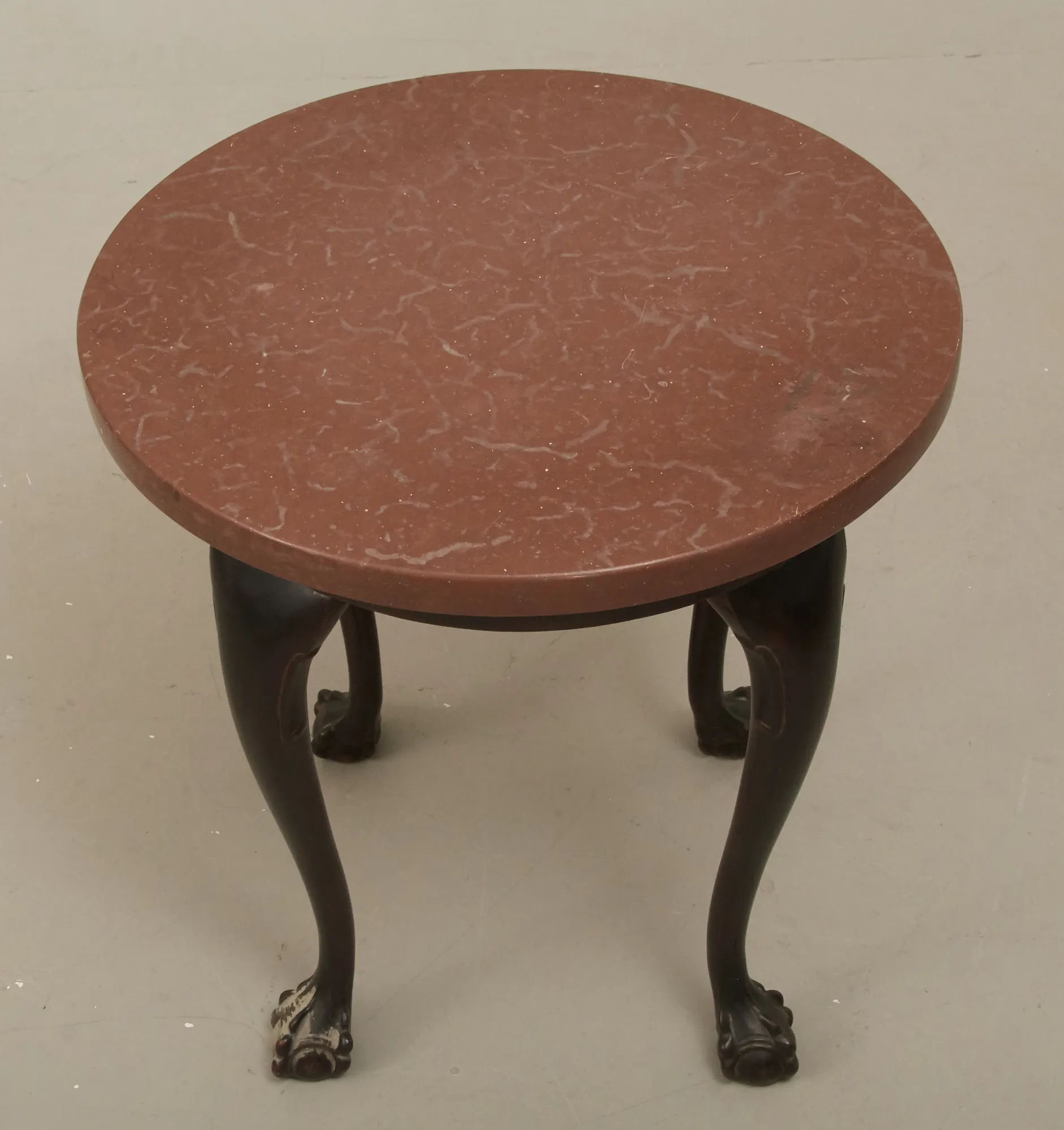 Chippendalestil, omkring 1940-tal, skiva i marmor, brännmärkt, diam 55 cm, höjd 57 cm, smärre bruksslitage.