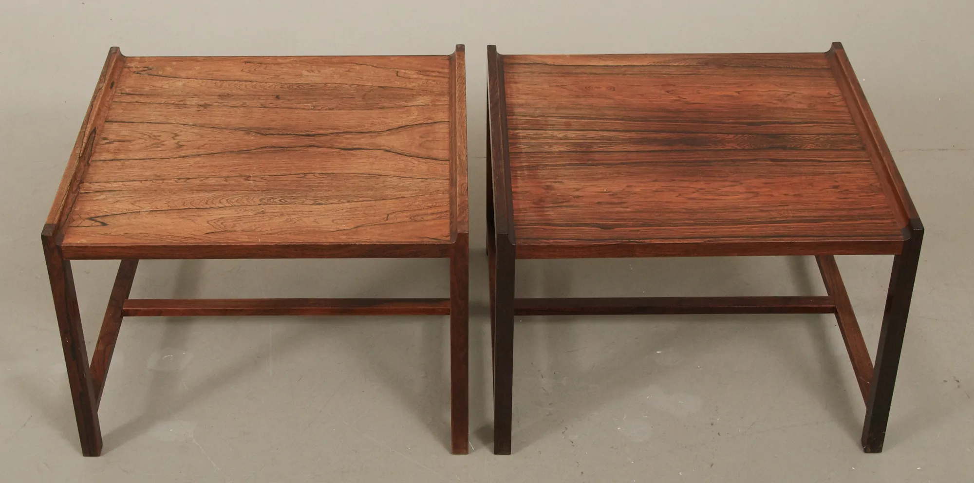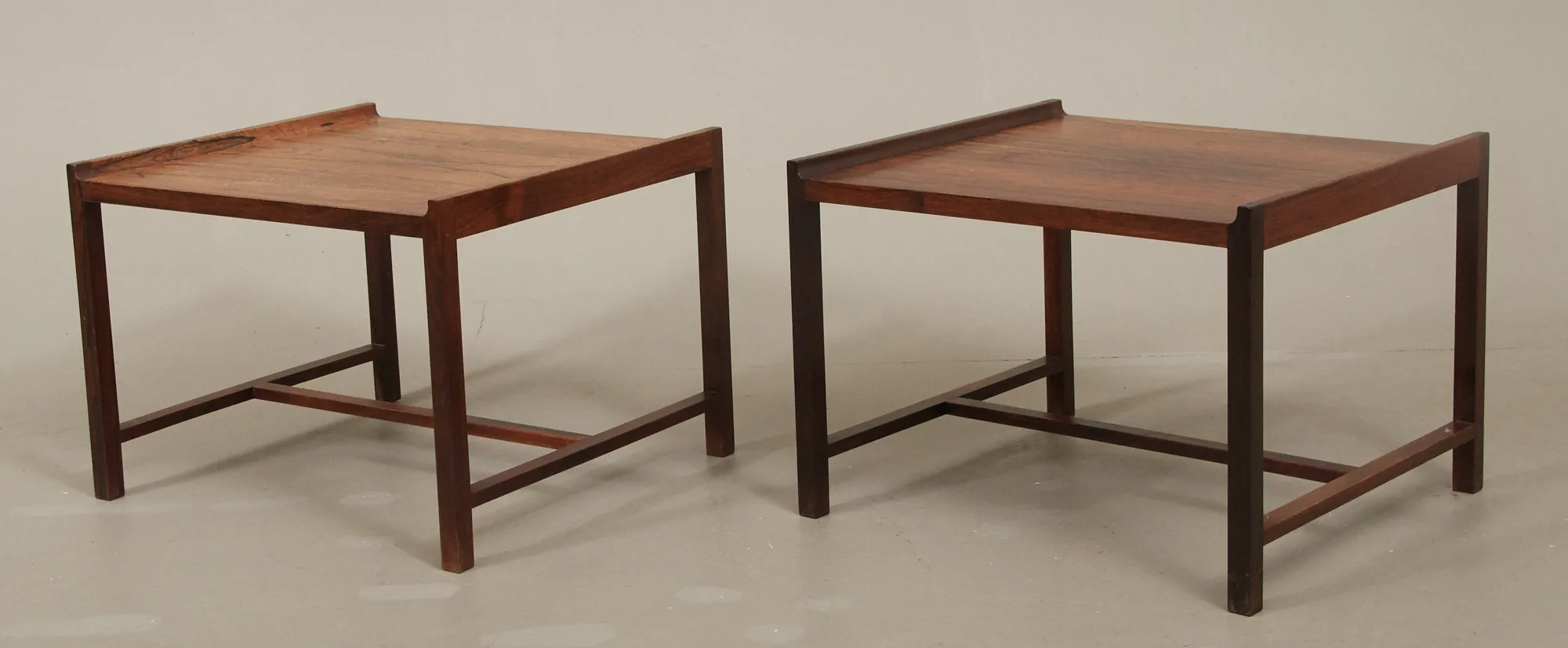 Ett par, jakarandafanér, etikettmärkt "Bröderna Blindheim Sykkylven, Made in Norway", 53 x 48 cm, höjd 37 cm, smärre bruksslitage, men solblekta.