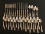 Olika bestick, bl.a. 10 kaffeskedar Rosenholm, tot.vikt. 792 gram, varav knivar med blad i rostfritt stål 227 gram.